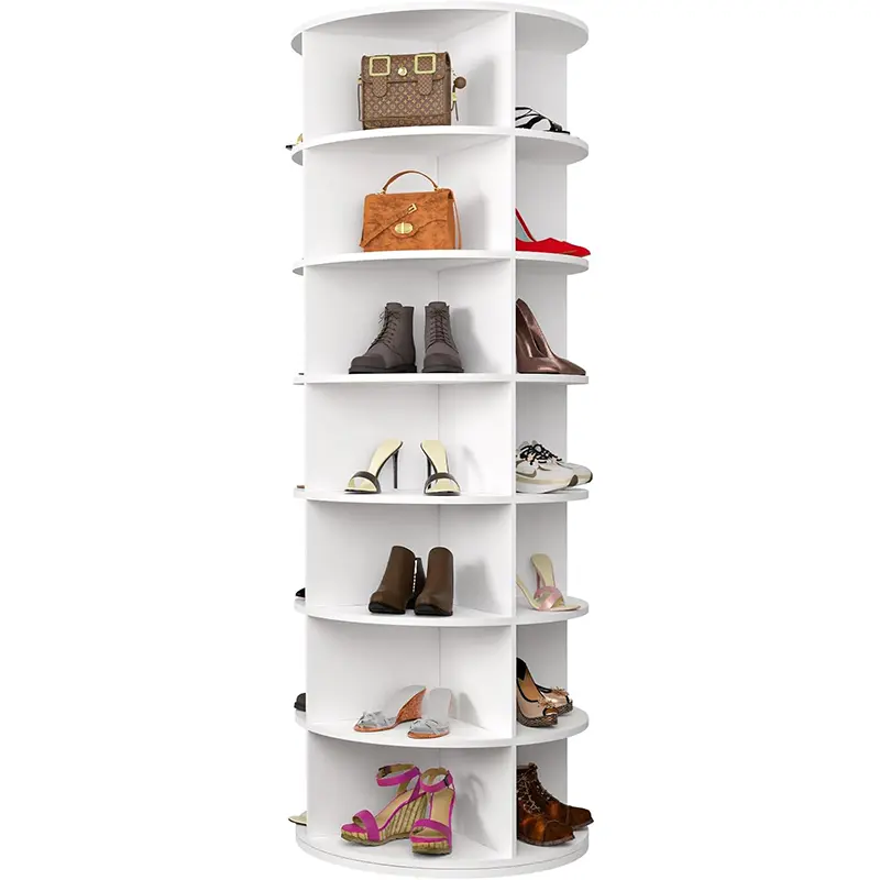 White+PVC+7 Tier Rotating Shoe Rack Towe