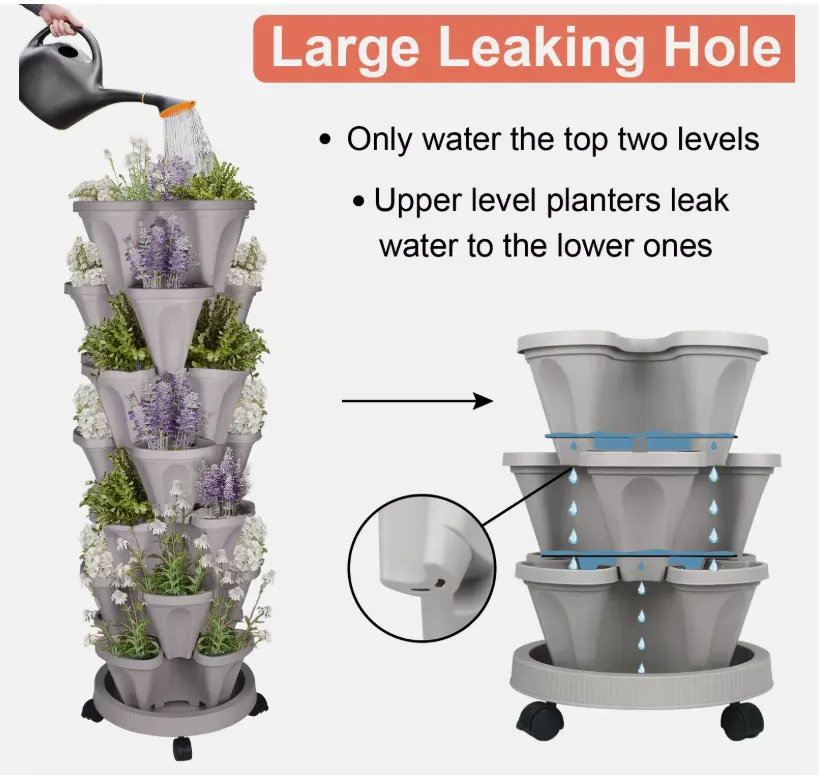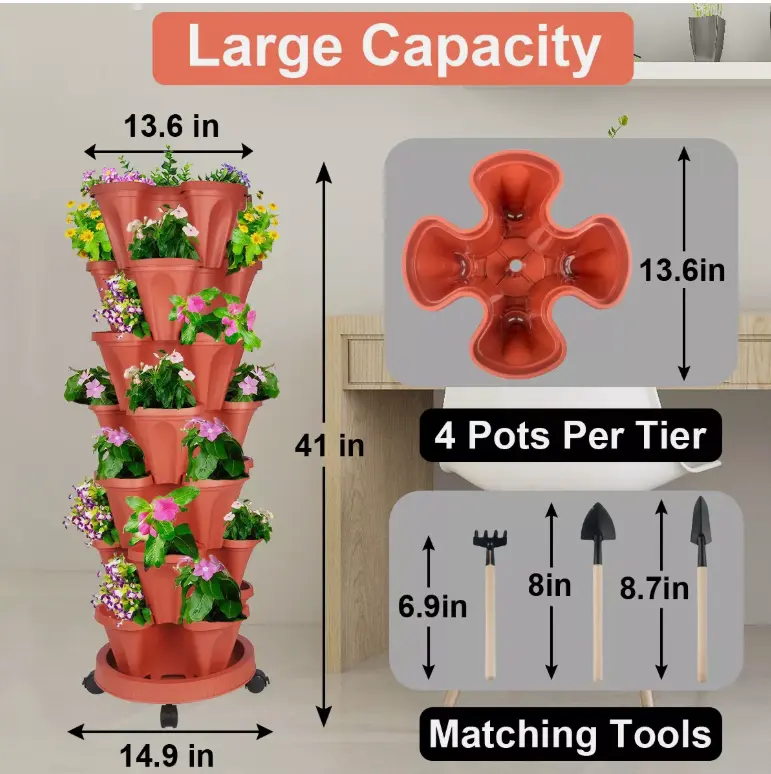 ✨ 7-Tier Stackable Planters are perfect for vertical gardening. This planter offers a sleek, modern look for your garden space. It's designed to stack, making it ideal for maximizing vertical space. The planter includes 4 wheels for easy mobility, ensuring convenience in repositioning. It's a versatile addition to any garden setup.