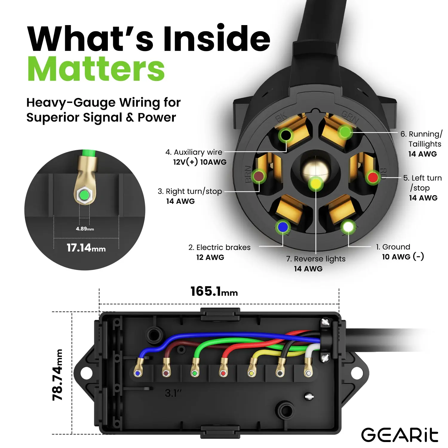 I am rewiring a 30 foot trailer and moving the battery and electrical connections from the front of the trailer to the mid point. So, I was looking for a good way to move the connections that would provide a secure and long term connection point. When this became available, I decided to give it a try. Here is what I found:1. The 16 foot cable is well contributed and the wires already terminate inside the box. The plug is molded and sealed. The cable entry on the box appears to be well sealed and there is a restraint to secure the cable to the box.2. There are only two mounting points for this box. They are on each end of the box so that you can bolt the box to the trailer frame.3. The box is not actually sealed when the lid is tightened as there is NO gasket in the well to really seal the box. There is just a plastic shallow trough. See pictures.4. There are several points where they have already placed plastic knockouts that slide out of the box and they provided rubber slides that replace them to seal a cable with. The only problem is that the seals are sized for a cable the size of the 7 wire used for the plug. Running in a few wires will not fill the hole so you will probably need to use some sealant. Ensure you put in a strain relief to keep wires from being pulled out.5. They include a color code strip that tells you what color wires does what. Makes it easy to wire up.6. This box appears to use 10ga wire for power, ground, and brake. It uses 14 ga for the balance of the wires.All in all, does what I want.