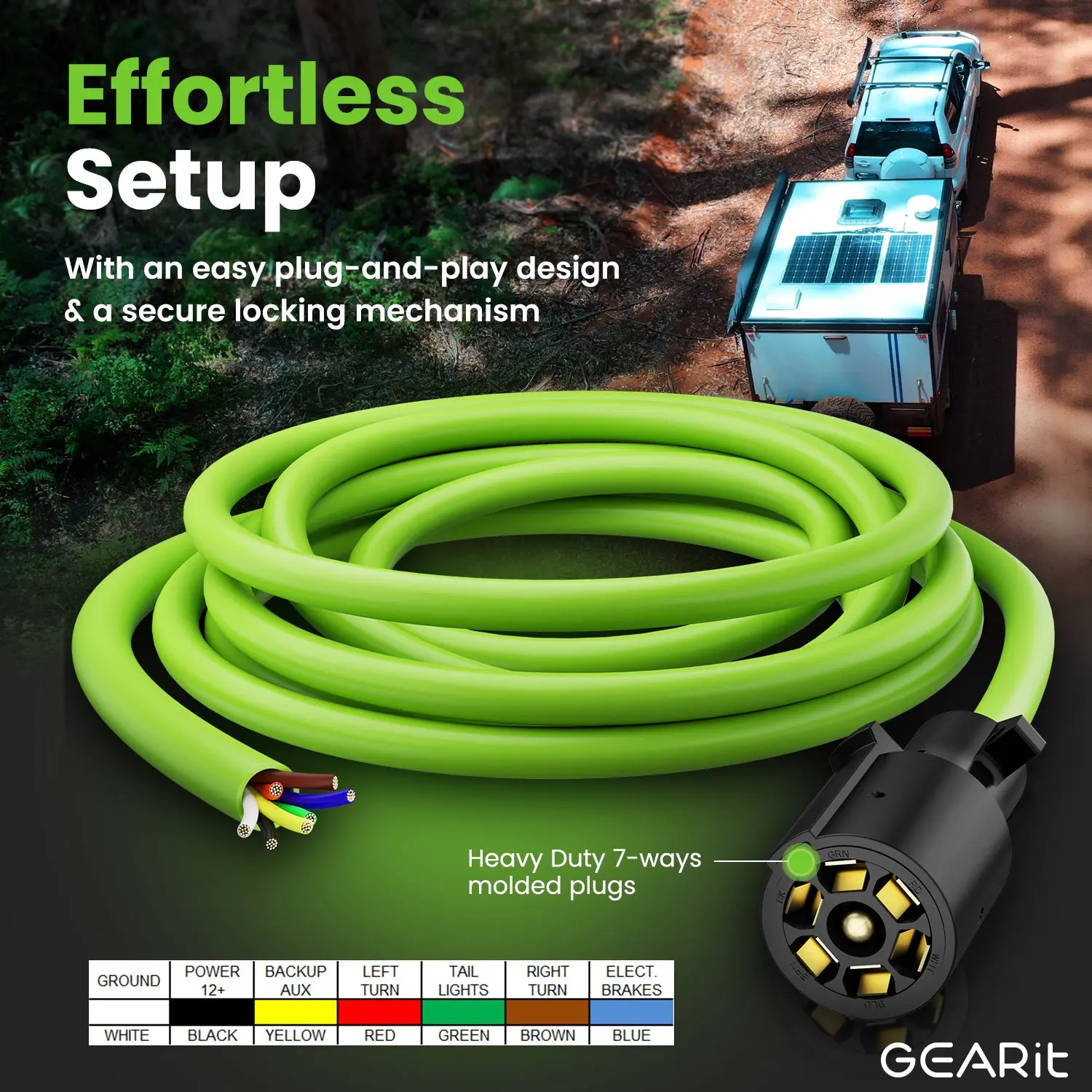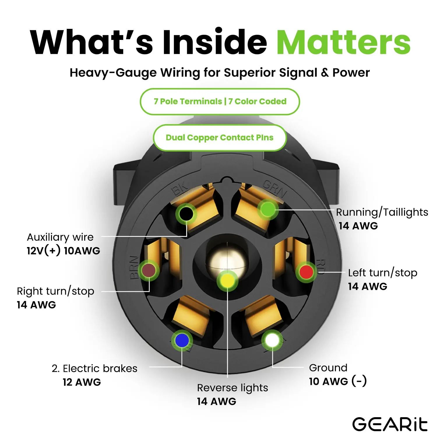 ·Safe and Reliable- Made of weatherproof and durable materials, GearIT heavy-duty 7 way trailer plug ensures a longer lifespan. The 7-pin double prong plug is also made of premium brass.
