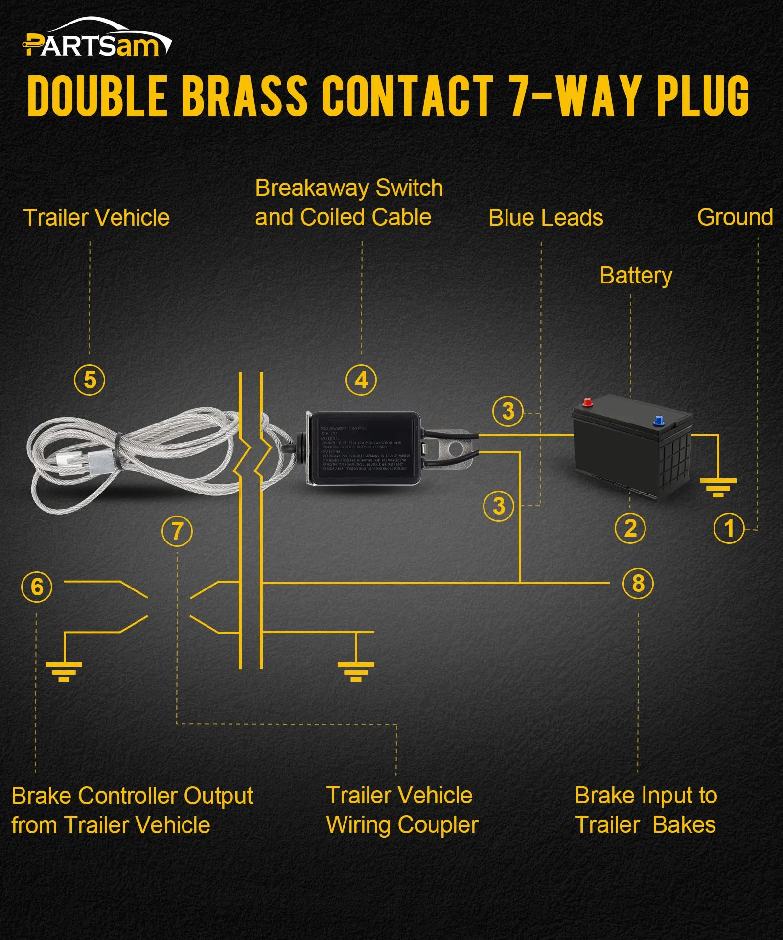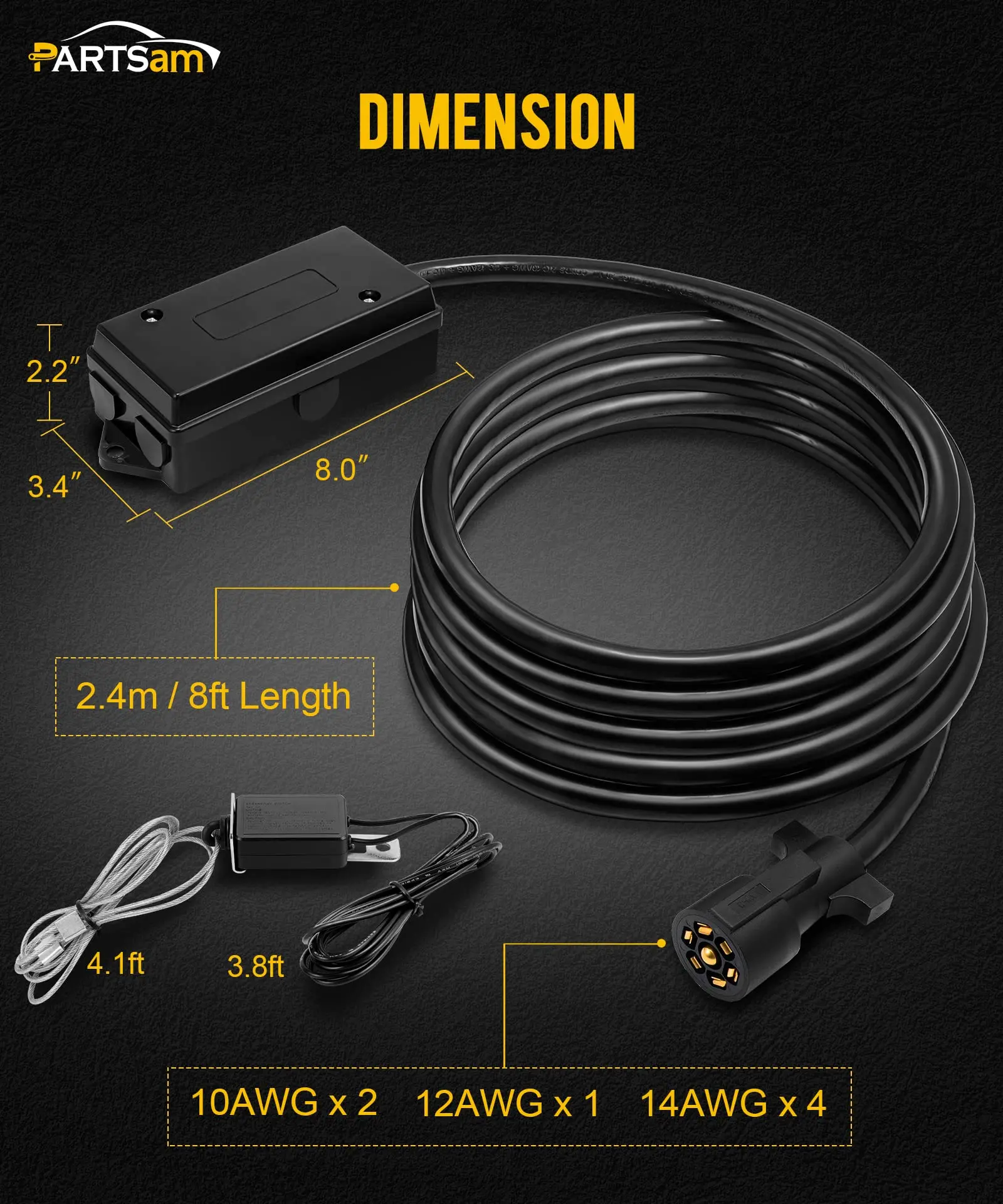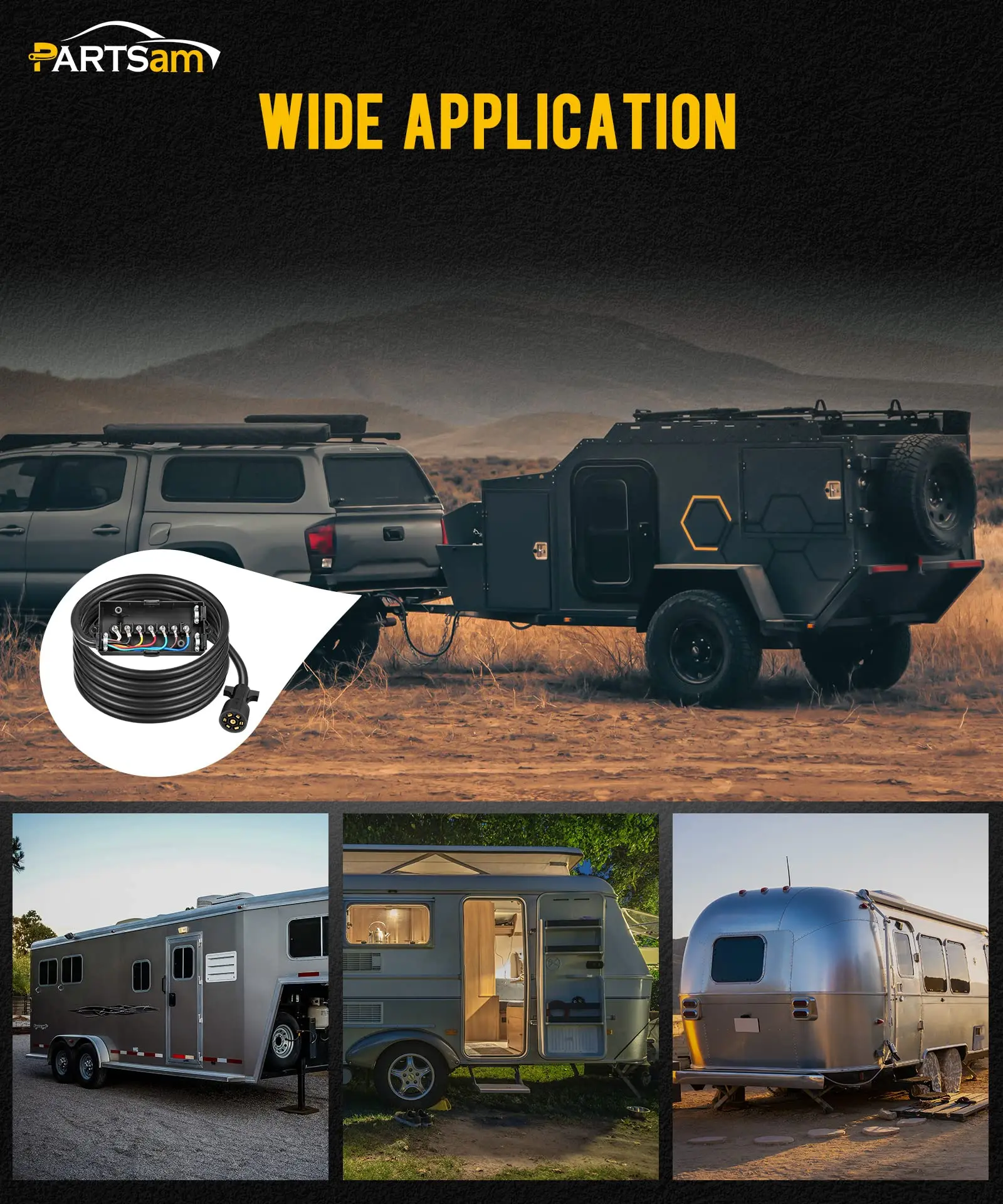 [Quick and Easy Connections] PARTSam 8ft trailer cord features a 7-way copper blade molded into a heavy-duty plug, which helps keep your wiring organized.