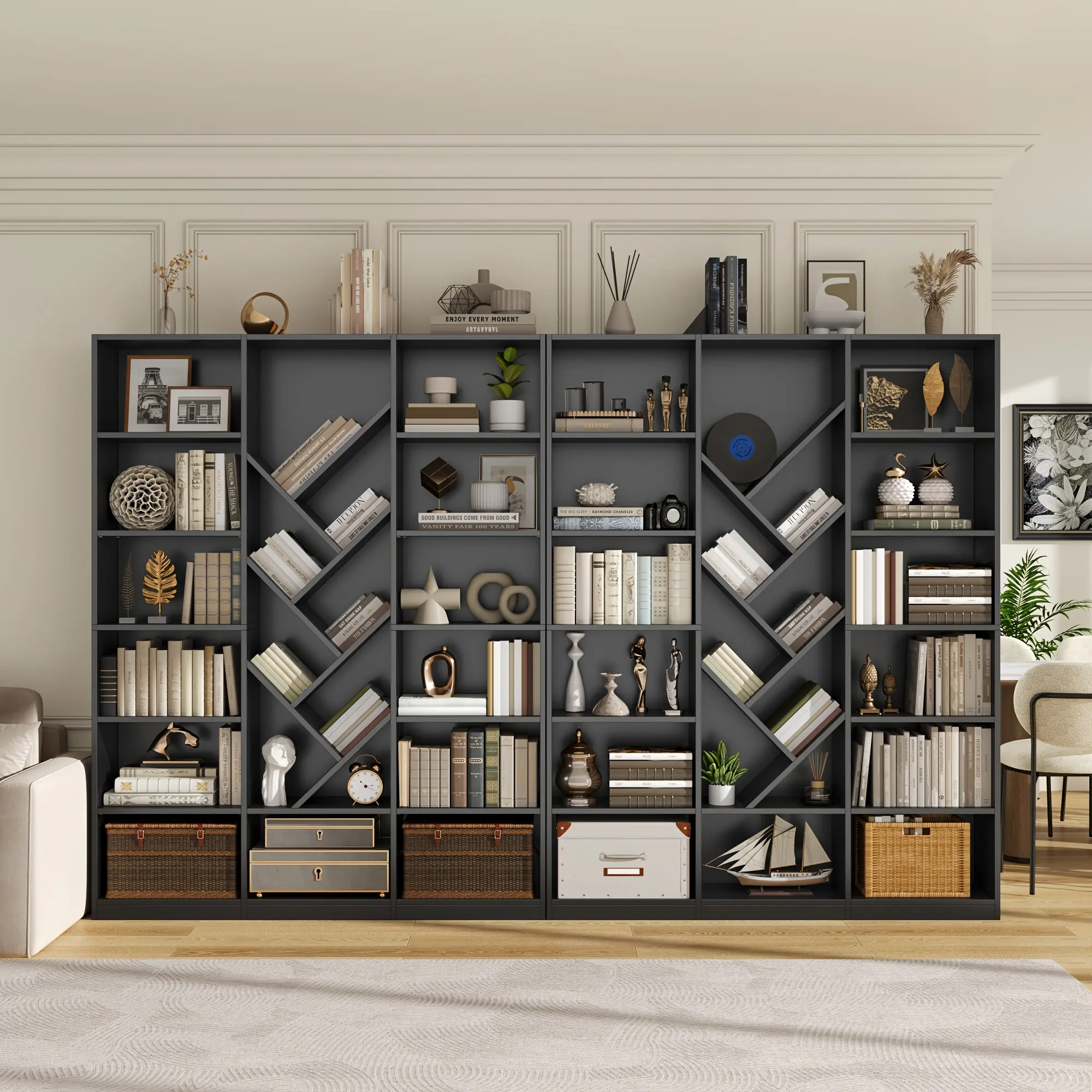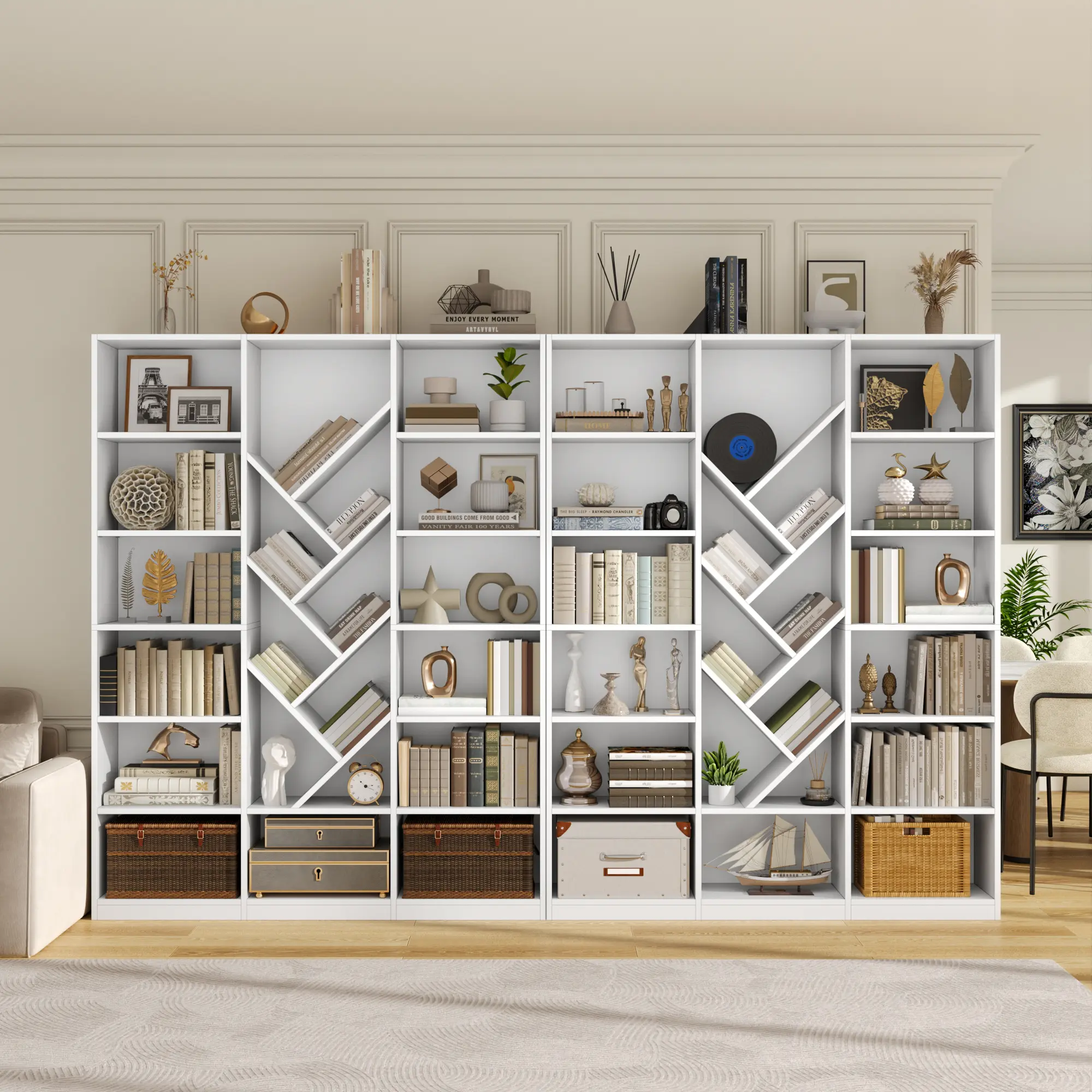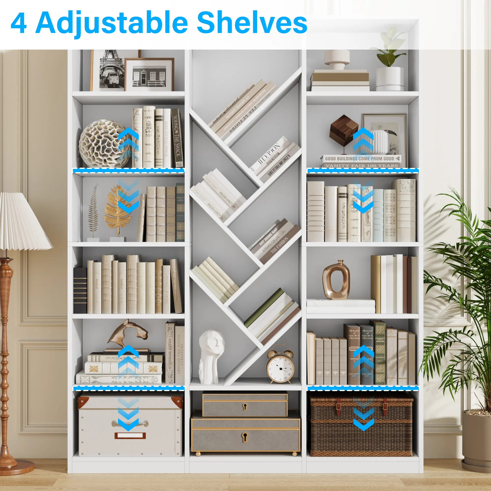 ·Adjustable Storage: The bookshelf includes floor-to-ceiling display shelves with adjustable storage, offering versatile organization options. Ideal for modern living rooms and home offices. 🏠