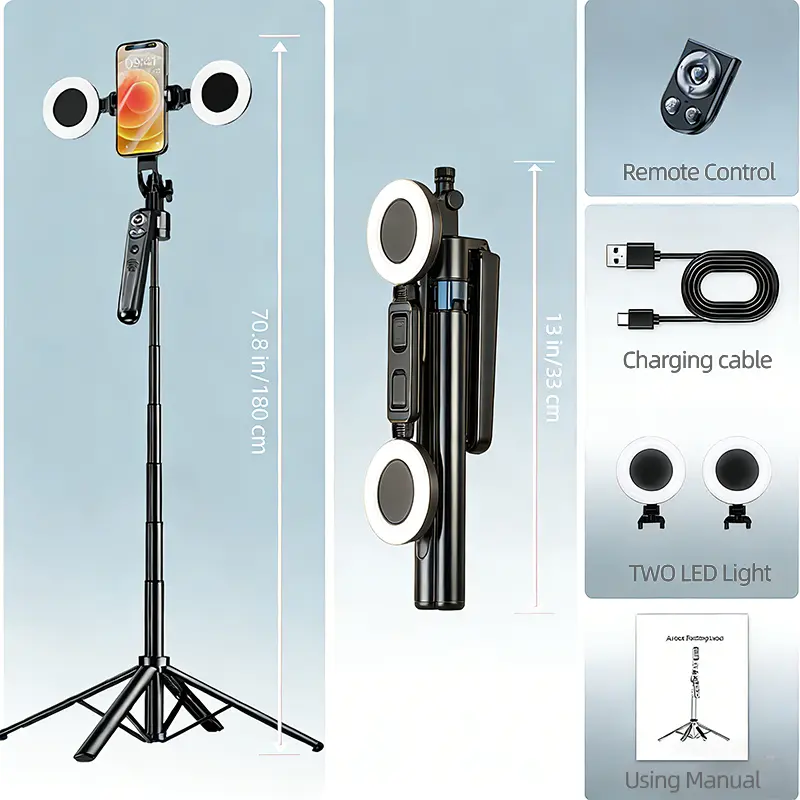 Perfect for solo creators. The AI tracking keeps me centered while filming, and the lights make a big difference. Easy setup, sturdy, and great height range. Saves time and makes recording smoother without needing help.