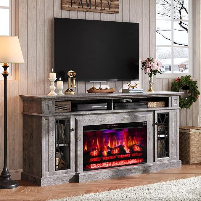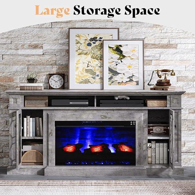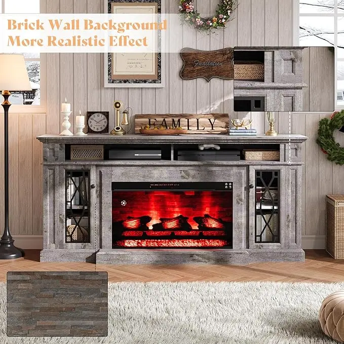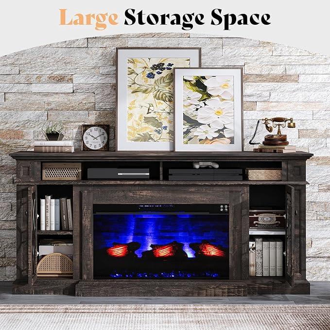 DIAMOND DOORS AESTHETIC: Special diamond door design of farmhouse fireplace TV cabinet adds a touch of rustic charm, Thick side panel decoration and raised bottom panel enhances the overall beauty to your living room and bedroom.