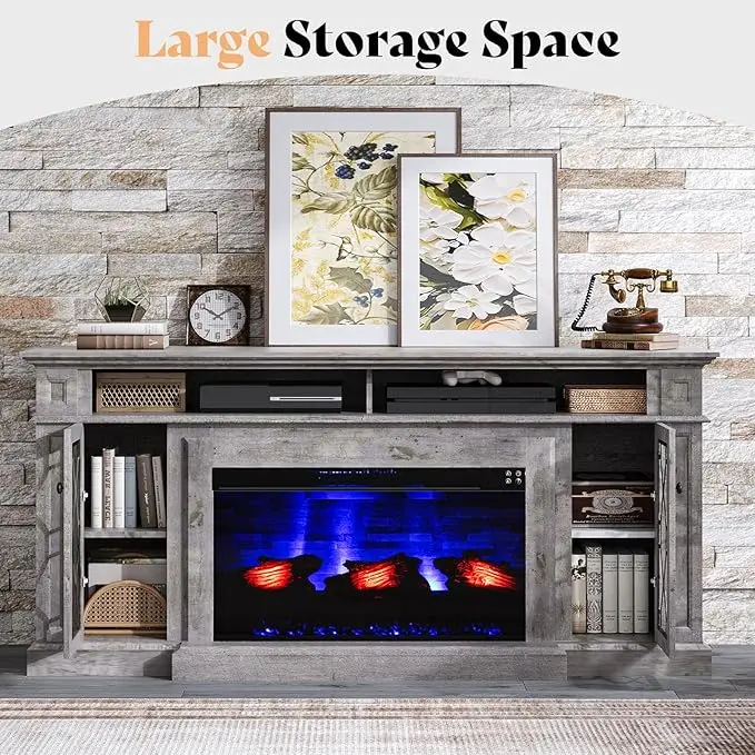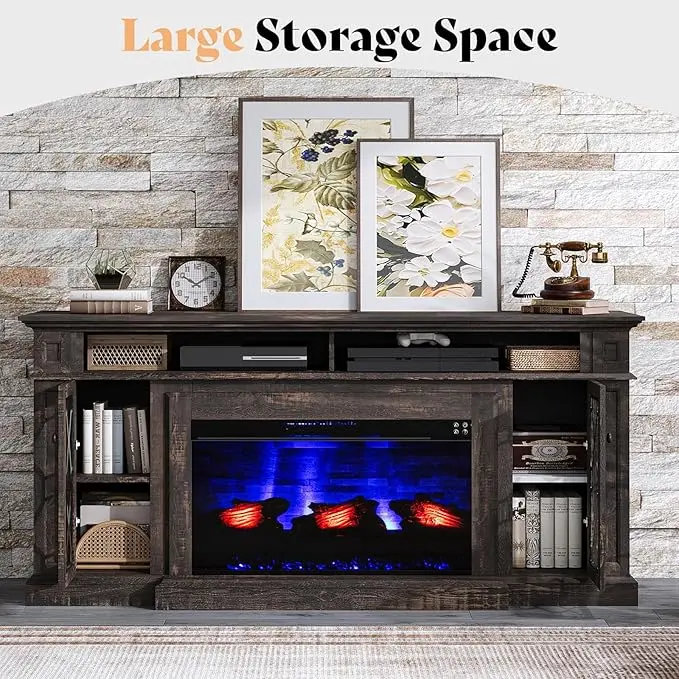 STURDY & DURABLE: 70in Heavy Fireplace TV stand features with 3.3" high wooden support base & 1.8" thick classic tabletop, the premium particleboard TV console body ensures robust stability and 250 lbs weight capacity