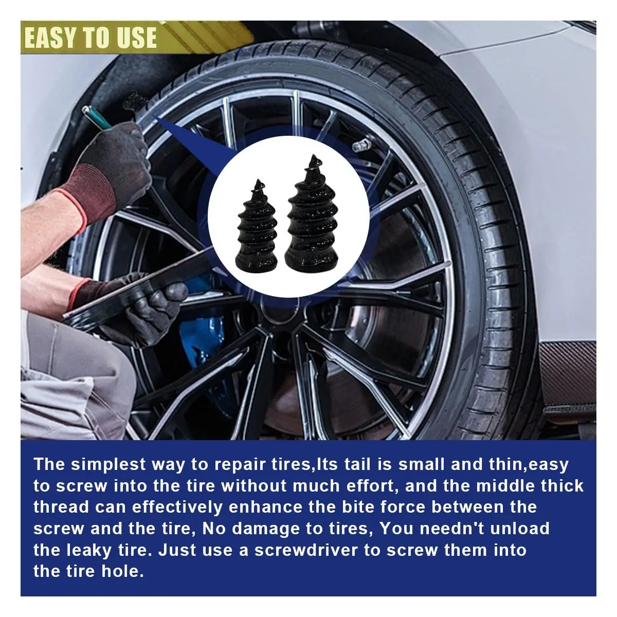Worked like a champ. Coms with sever different sizes. Cleaned the hole and screwed it in. No more trips to the tire shop