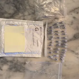 My order arrived today, unfortunately the shipping envelope had a tear on the left side but had clear packing tape over it. When I cut the top open, there were 2 clear ziplock baggies in it. The smaller one had (35) pieces of what I believe to be the smaller plugs, the larger baggie was empty.