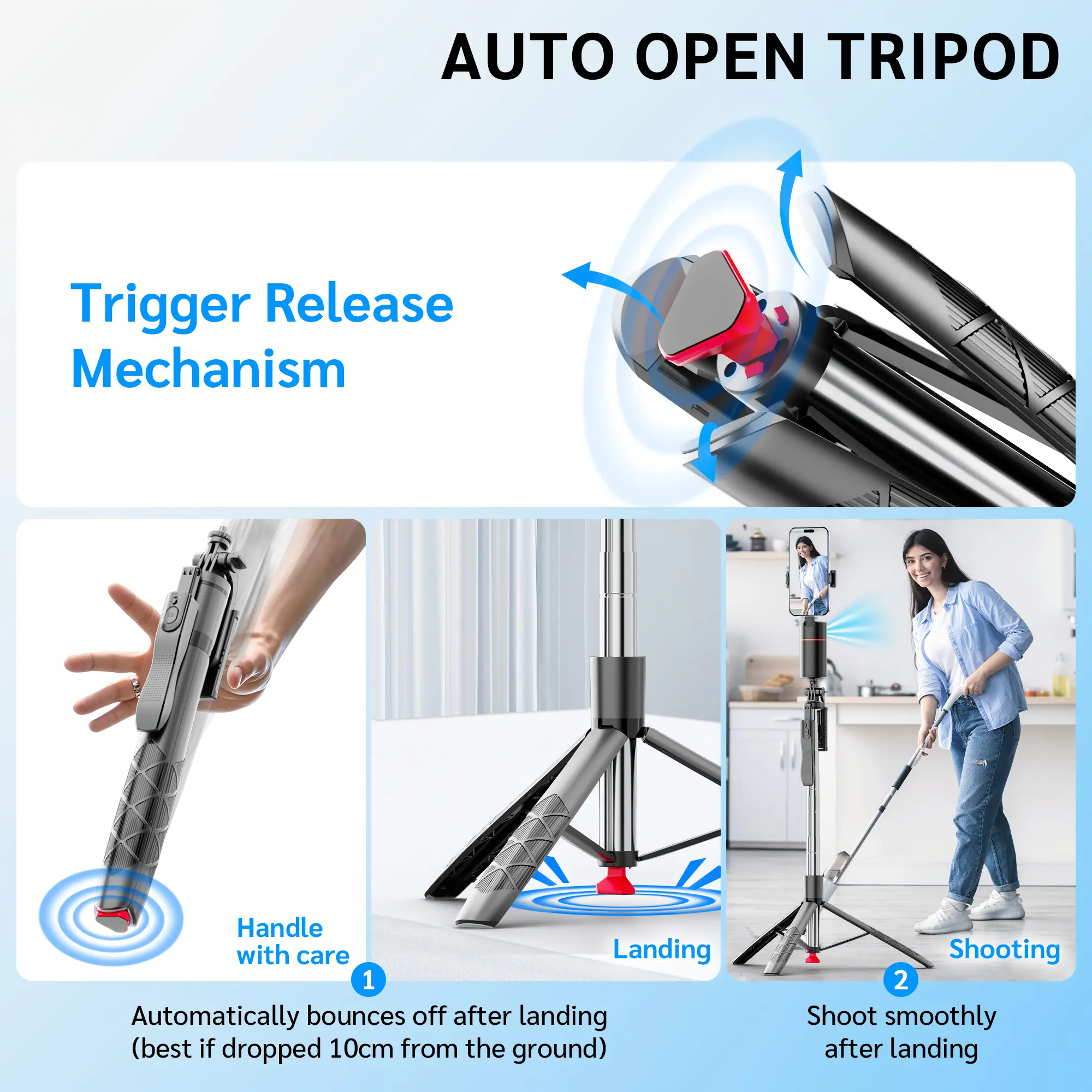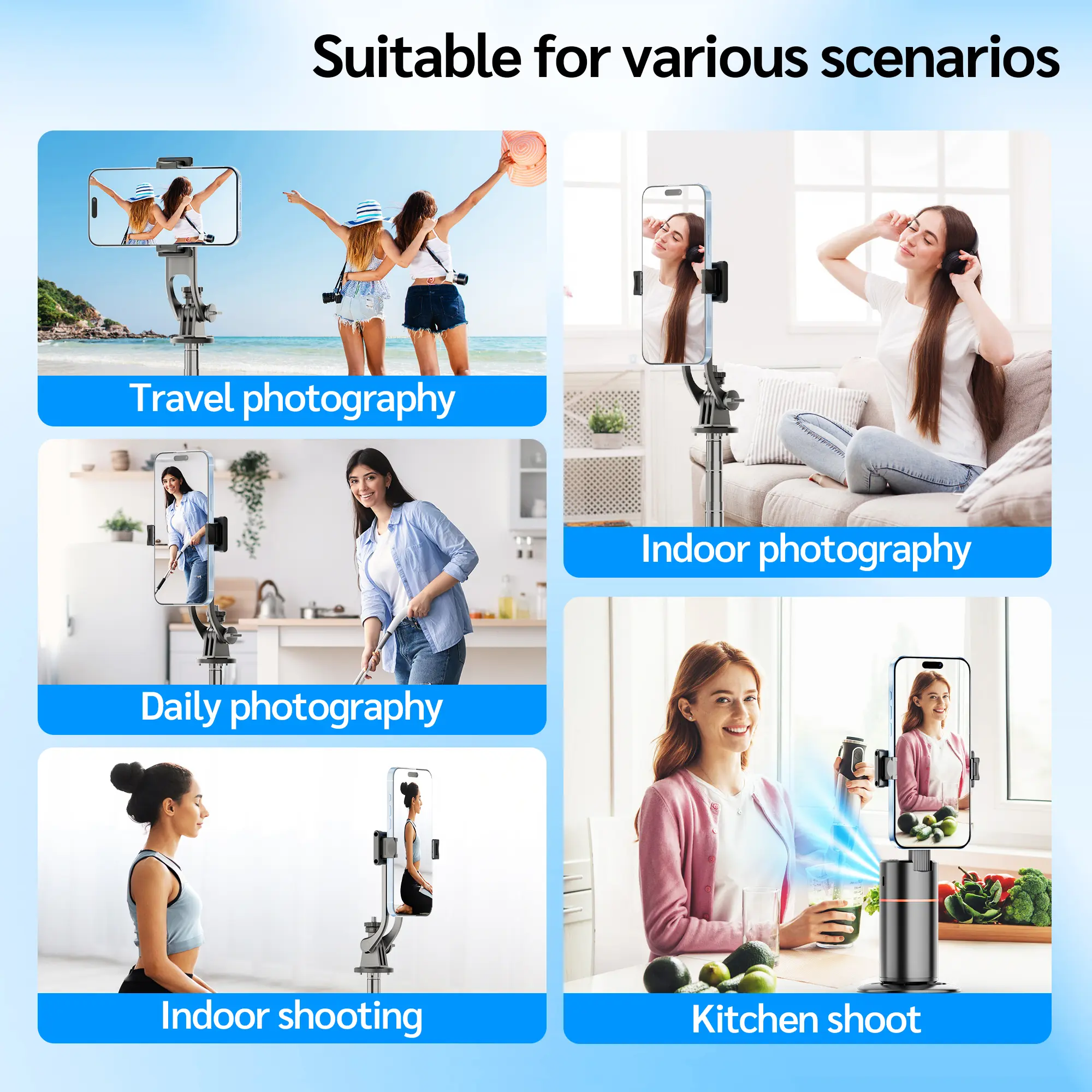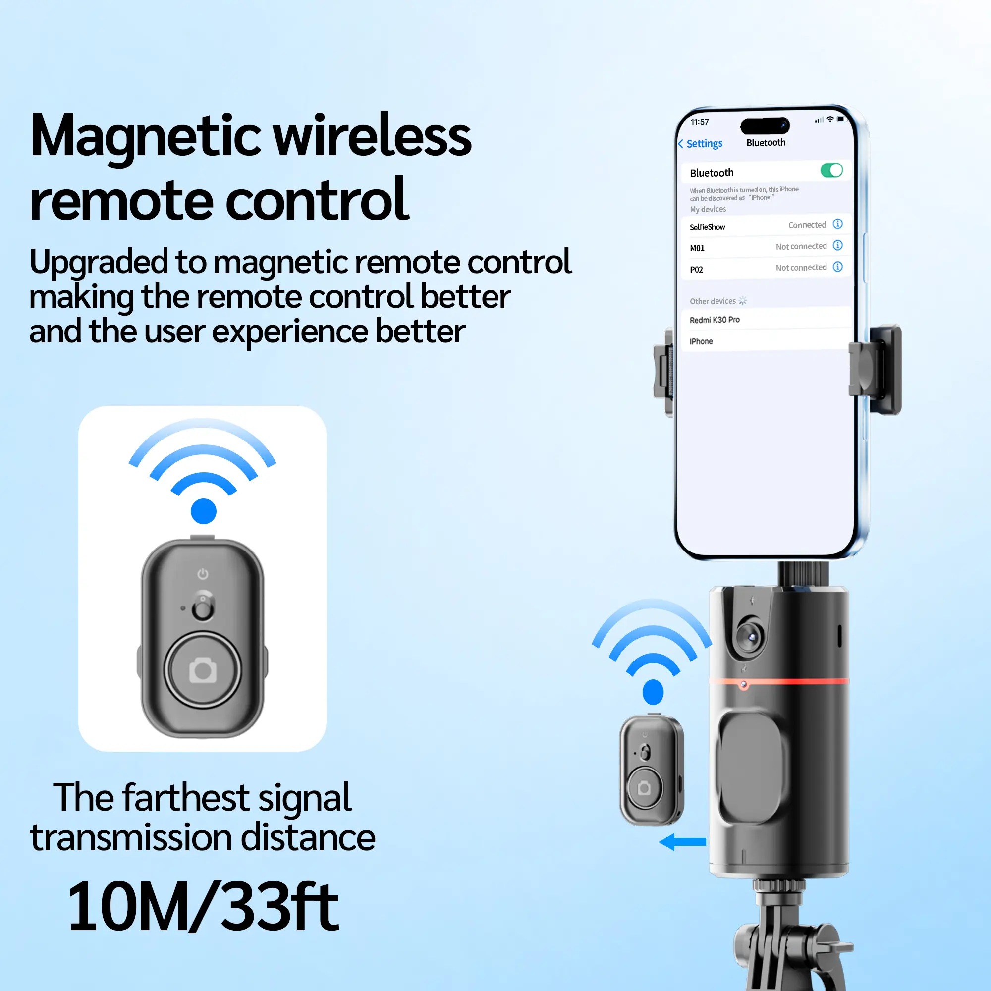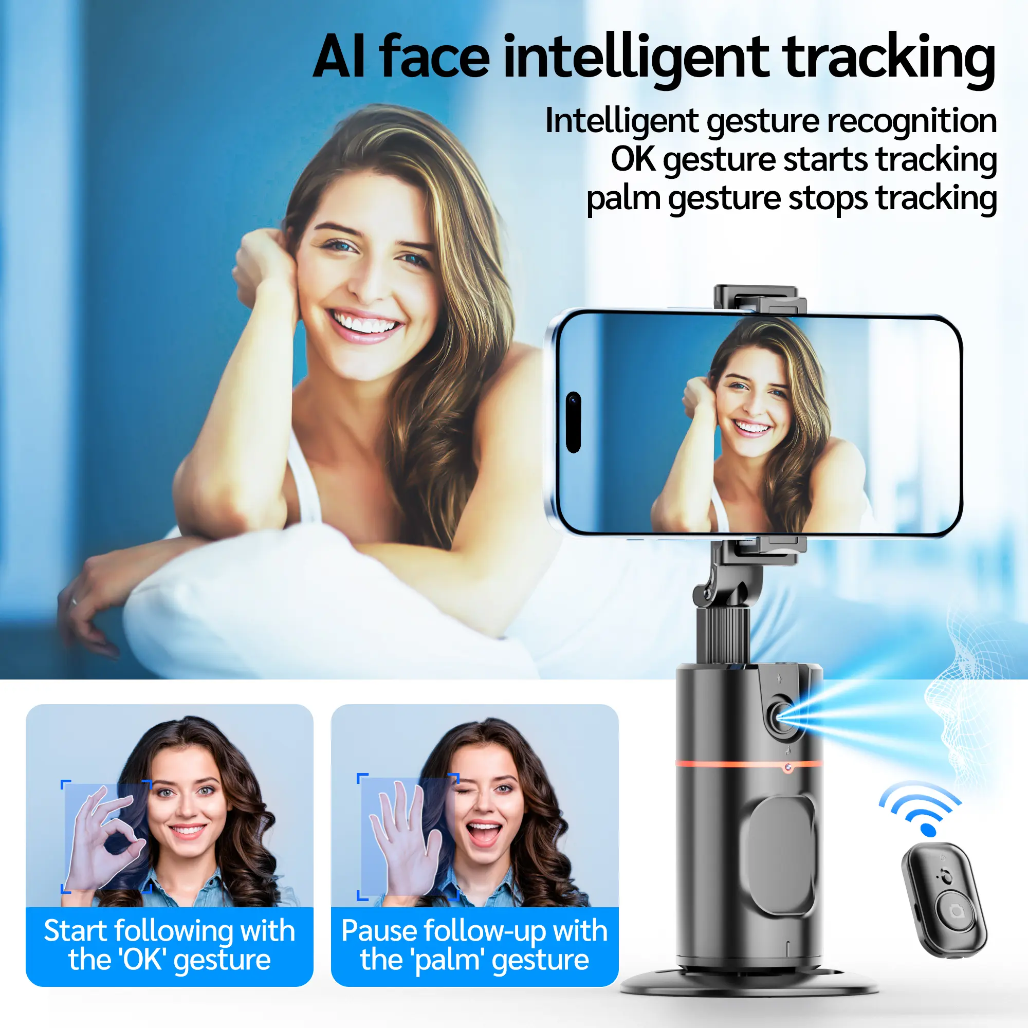 71"Auto Face Tracking Tripod for iPhone/Android with Remote One Click Pop Up Selfie Stick Tripod Gesture Control 360° Rotating Face Tracker,Follows Your Movement,for iPhone 17/16/15/14/13/Android/Camera/GoPro