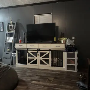I love this double kennel entertainment center ! Both dogs have plenty room to stretch out !
