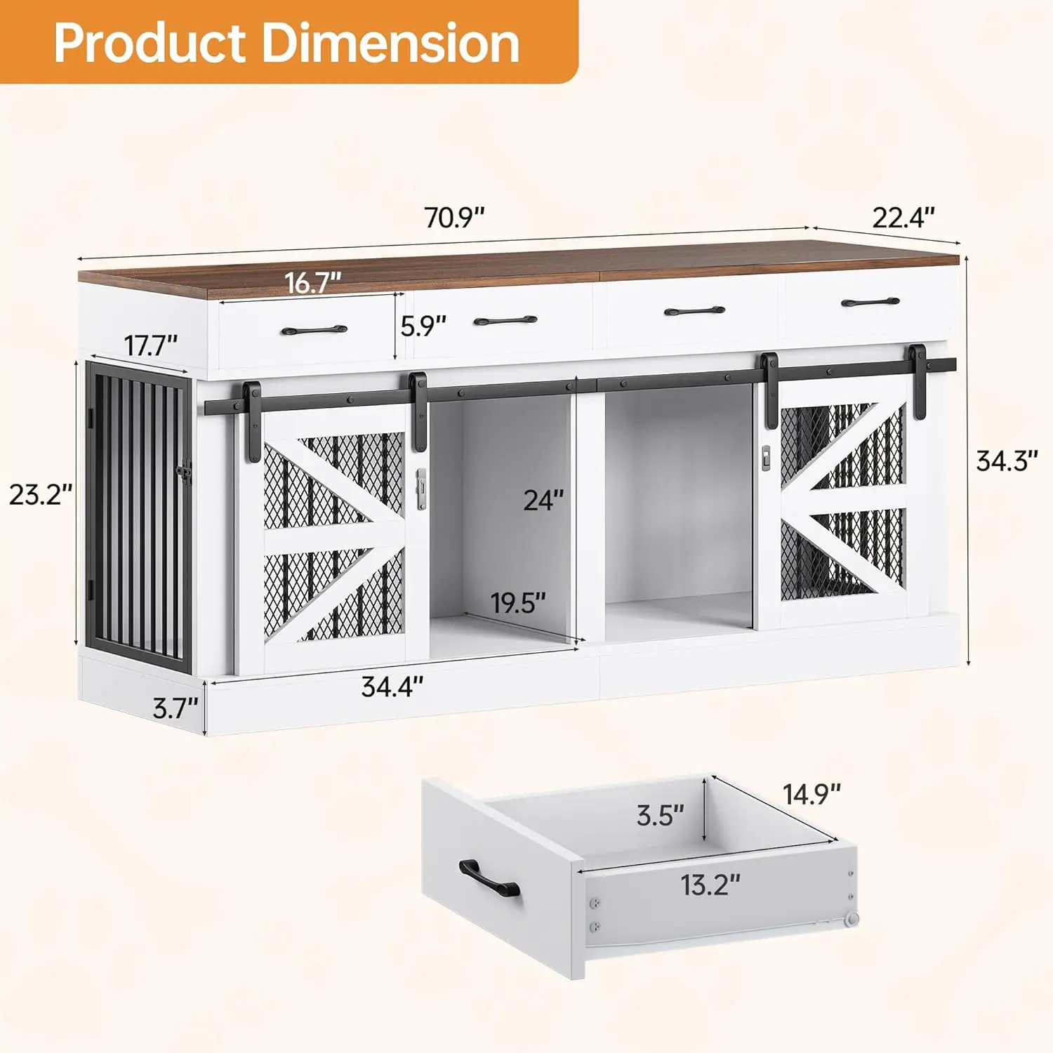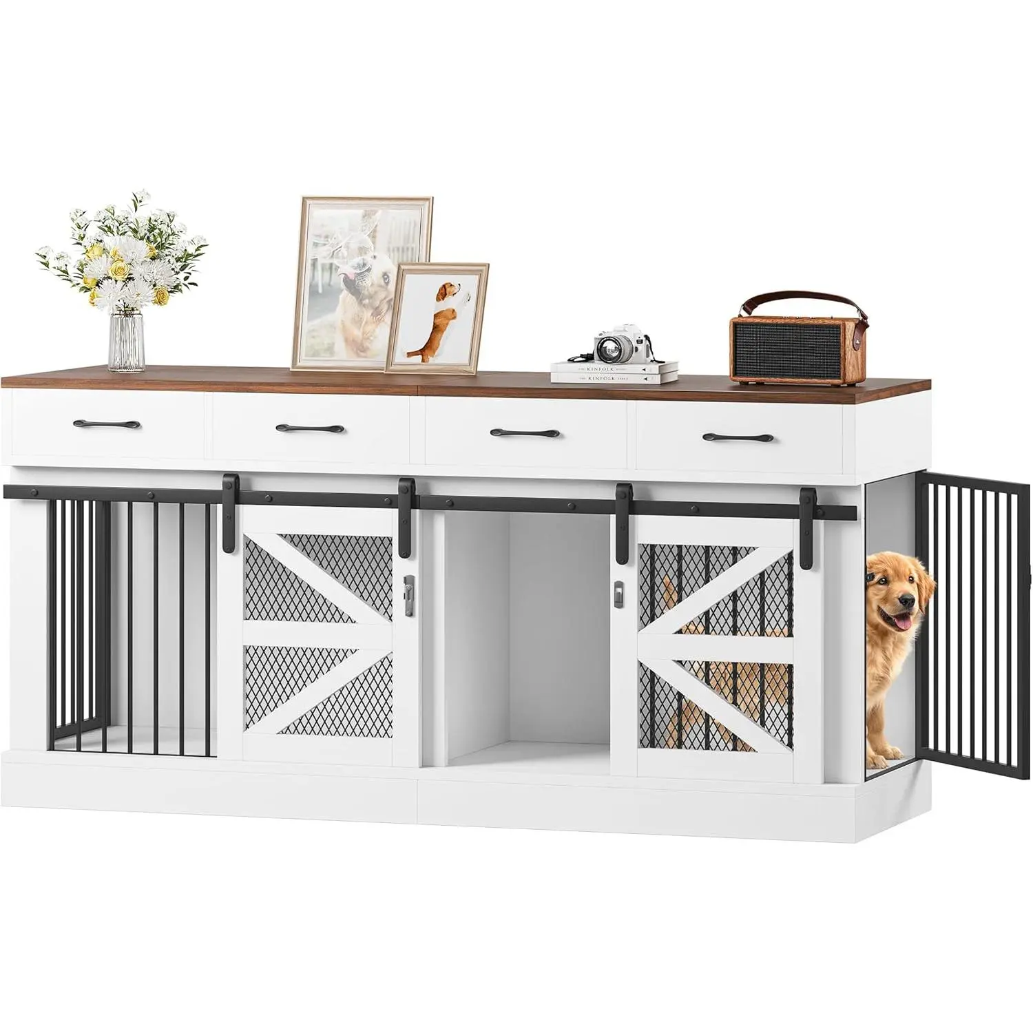 I love this kennel, it fits both of my dogs comfortably, and it also brings a stylish look to the house. I love the drawers that come with it helped with minimizing space. I will say it is a pain to put together took me about 5 hours to put this thing together but I love it . It looks great.