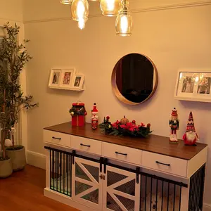 I really like this dog crate console table for my 2 Aussies . It’s perfect for my space. I give this item a 4.5. The box did come slightly damaged but the items inside were not damaged. This dog crate took a couple hours to assemble and some of the screw holes were slightly off. Overall a good item.