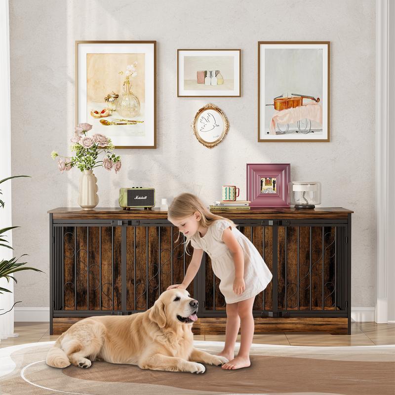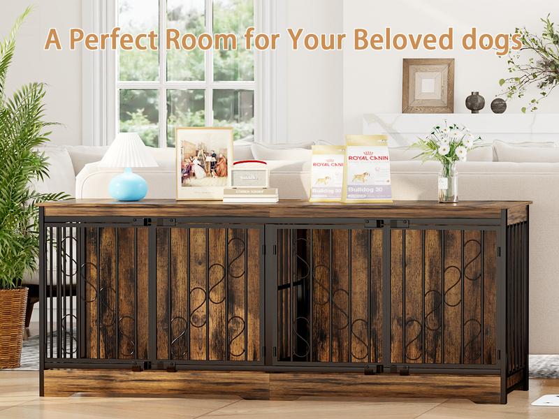 ·【Versatile Furniture-Style Dual Dog Crate】 Doubles as a secure pet crate and stylish home piece, easily converting into an end table, TV stand, or coffee table. The spacious top surface holds decor, plants, or pet supplies, seamlessly blending into your home décor while maximizing space.