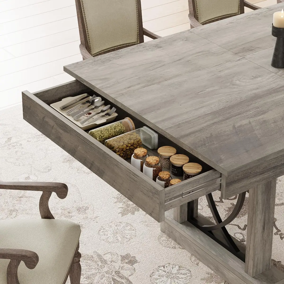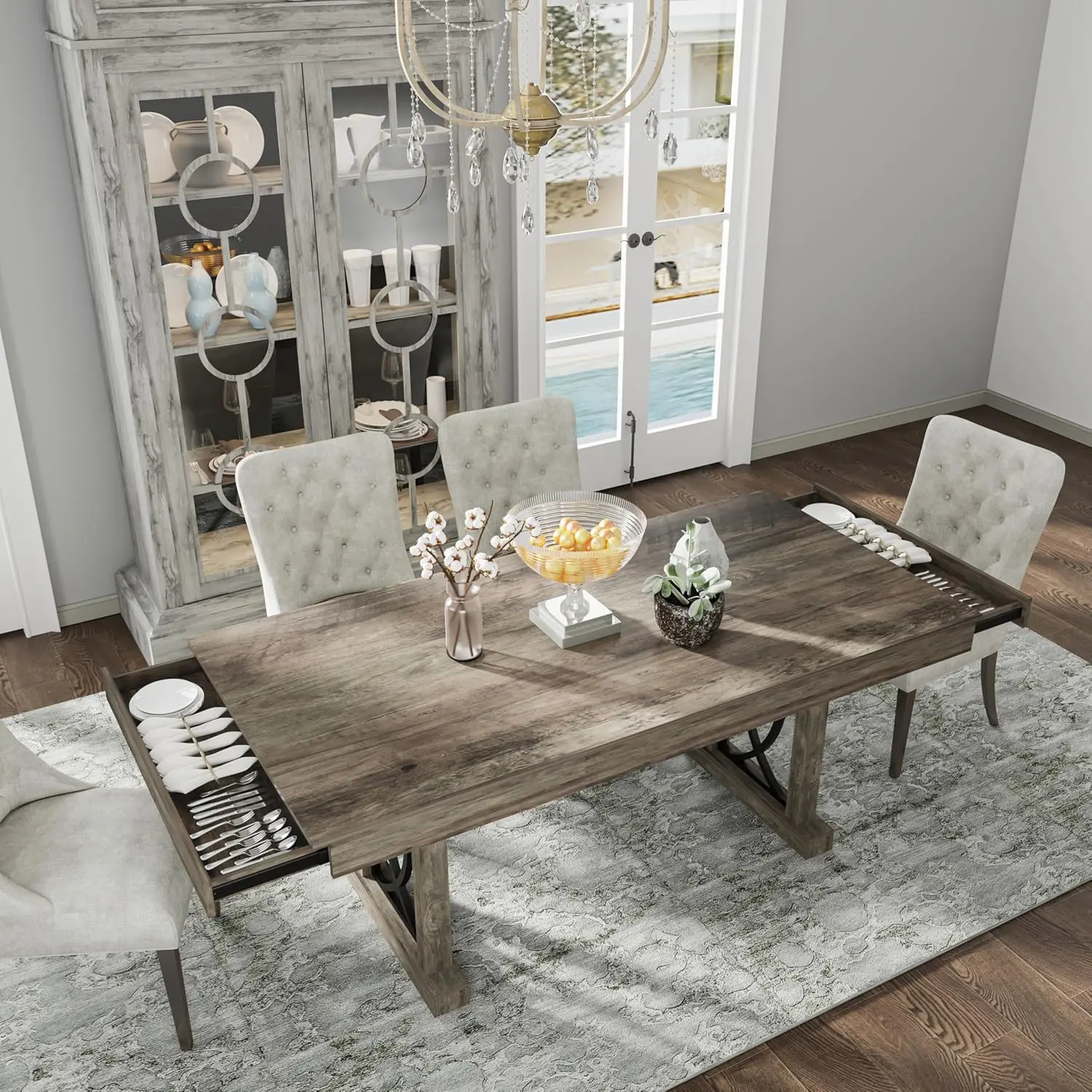 ·【Double-sided Drawer Design】This 71-inch dining table is equipped with large-capacity drawers on both ends to easily store daily tableware, meeting the additional storage needs of busy families and creating a neat and stylish dining atmosphere. In addition to being used as a dining table, it is also suitable for use as a leisure table, office desk, and conference guest table.