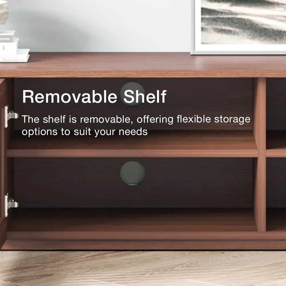 [Long Lifespan]The internal structure is compact, solid and durable. Not easily deformed or cracked. Long-term use will not cause deformation and crack due to temperature and humidity changes.[Durable Wood]Natural changes of wood color and texture make each work unique. It has high colour retention, stability and scratch resistance.[E0-Grade Environmentally Friendly Wood]It reduces formaldehyde content and enhances the safety and environmental friendliness of the product. It is not only healthier and more eco-friendly but also has higher durability, providing you with a more reliable and long-lasting user experience.[Odorless Paint]No odor is emitted during the unpacking or use of new furniture. It is environmentally friendly and promotes health. The paint also has stronger hardness.[Slatted Door Design]The modern slatted doors allow for easy remote control signal access to electronics and the heat dissipation of console.[Cord Management] 2/4 cutout openings at the back of cabinet for easy cord management.