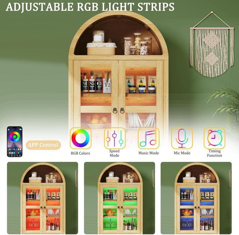 ·Versatile Arched Cabinet: This multi-functional storage cabinet—use as pantry cabinet, kitchen cabinet, china cabinet, or arched bookshelf. The arched glass doors add timeless elegance while protecting items from dust. Featuring adjustable shelves + two deep drawers, it adapts to kitchens, living rooms, or home offices effortlessly