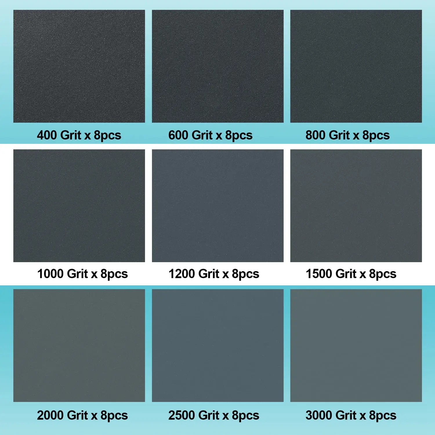 Multi-Grit Assortment: Includes 8 sheets each of 400/600/800/1000/1200/1500/2000/2500/3000 Grit, a total of 72 count, coarse to fine, meets of your needs. Grit number are printed on the for easily identify
