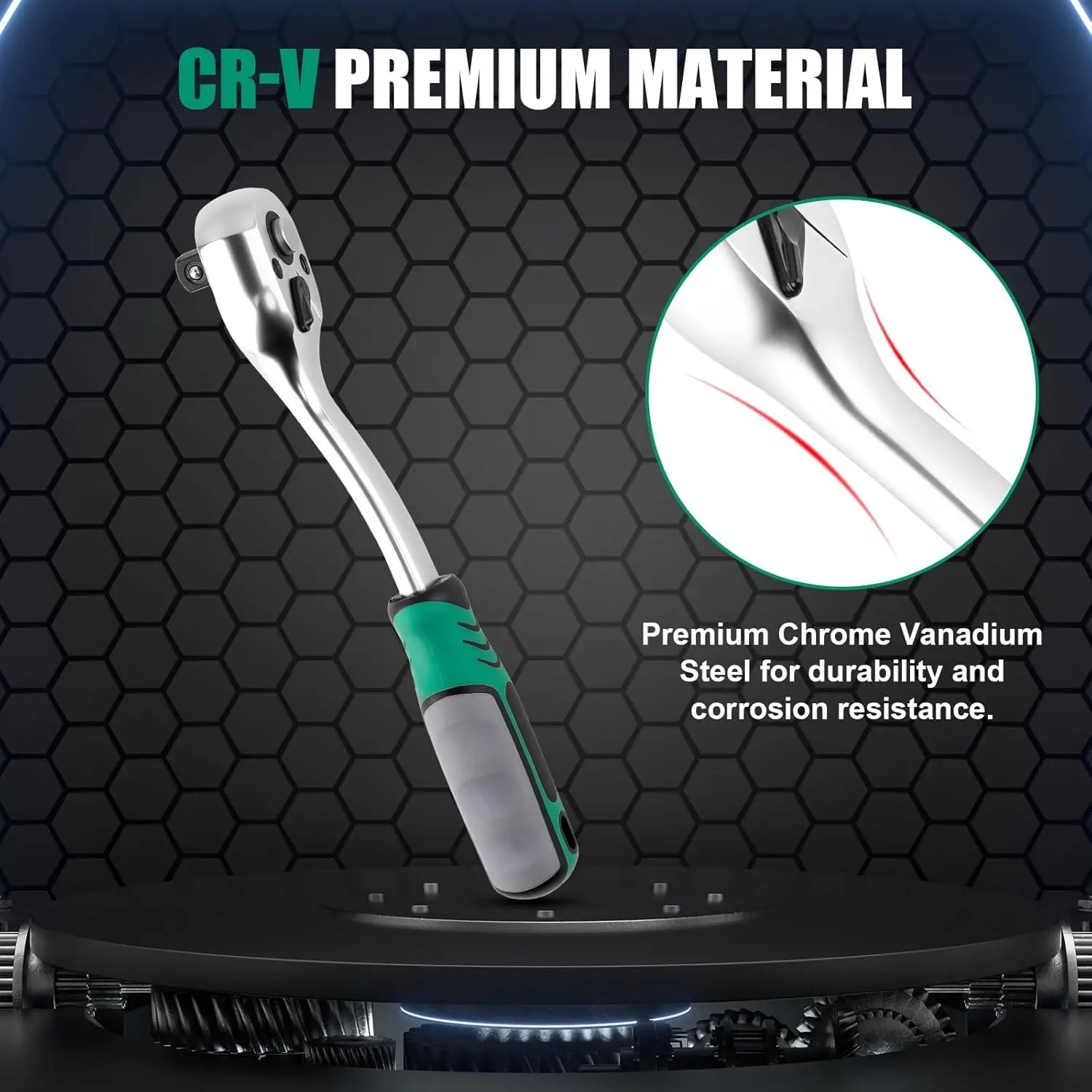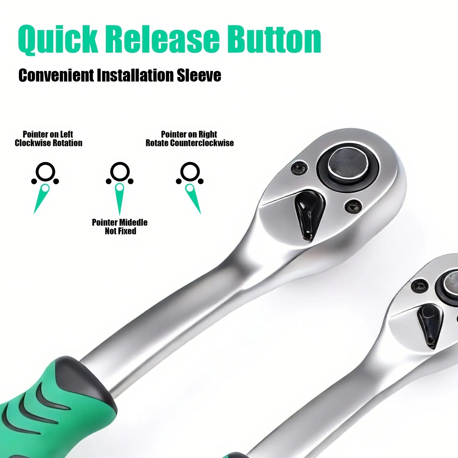 【Quick Release】: Features a 72-tooth quick release ratchet mechanism for fast and efficient socket changes.