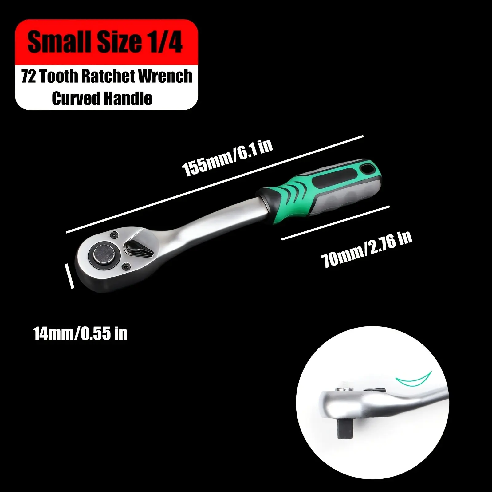 72-Tooth Quick Release Ratchet,1/4" 3/8" 1/2" Drive Socket Wrench, Reversible Ratchet Wrench , Professional Hand Tool for Automotive Repair and Mechanics Use