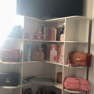 Super cute!! #bookshelf #cornershelf #closetorganization #pursecollection #closet