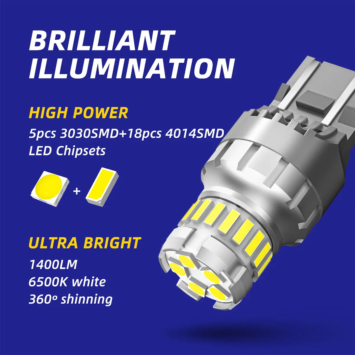 ·Super brighter: Newest high light SMD LED chips. 300% brighter than halogen bulb