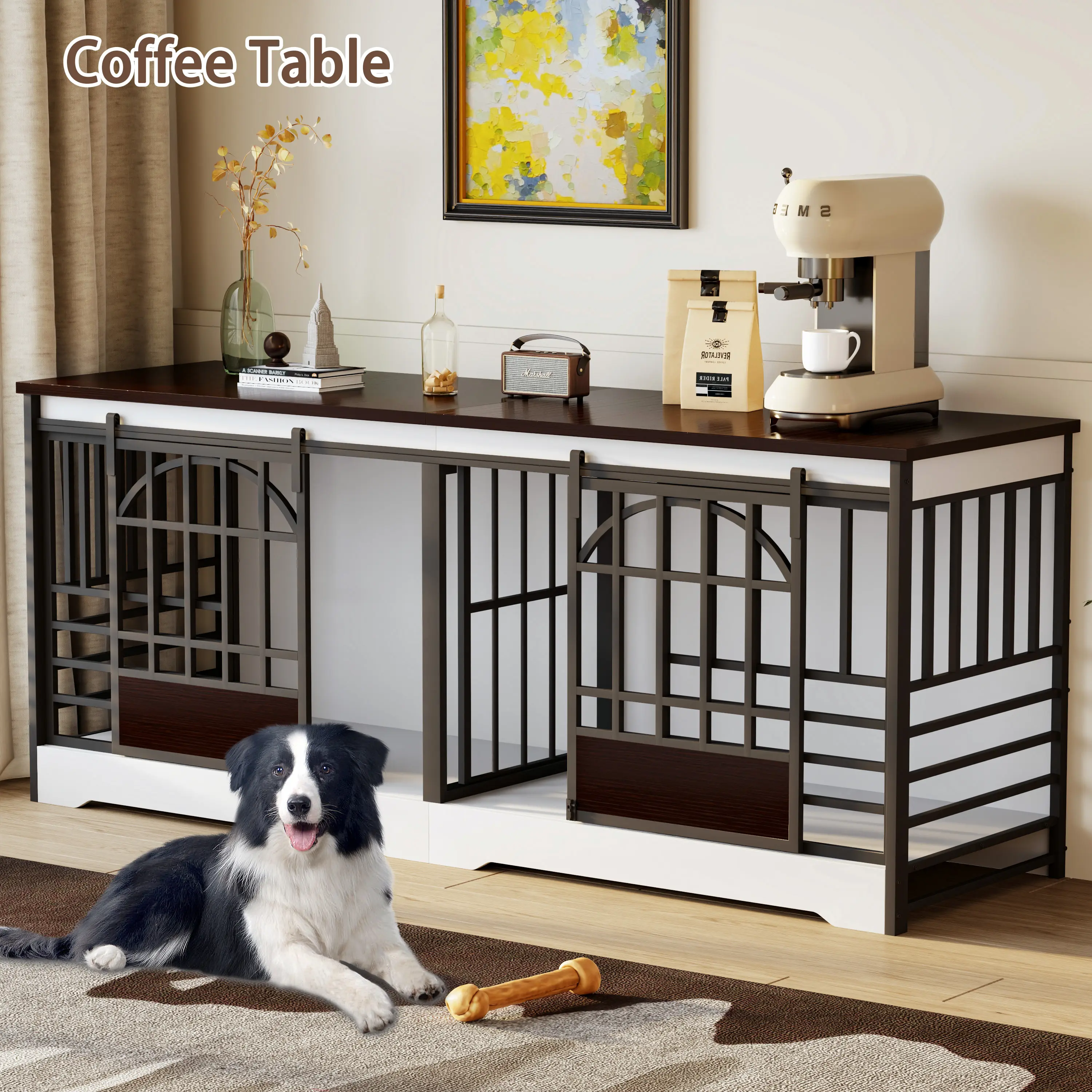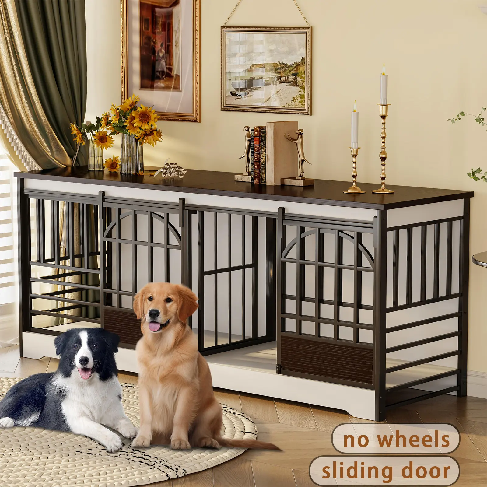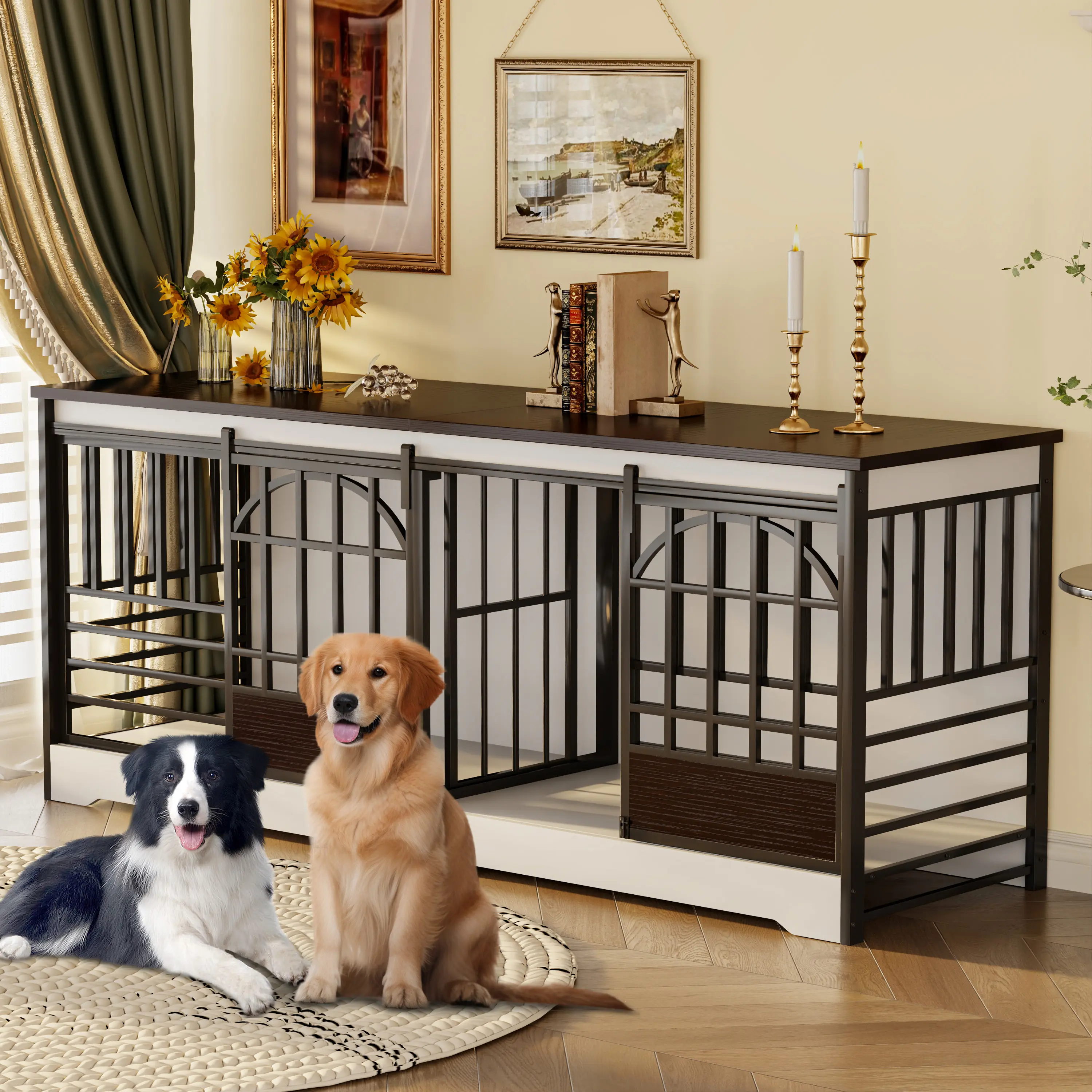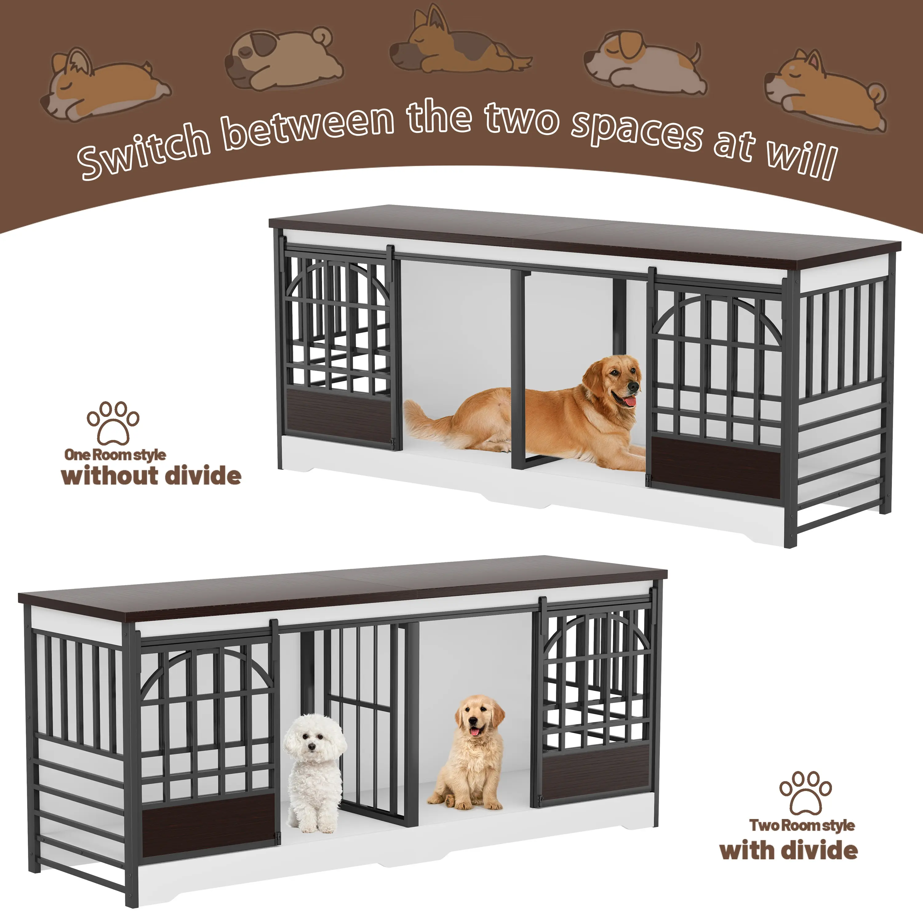 【Separate Spaces for Two Dogs】This double-door crate provides roomy, individual compartments for two pets—each measuring 38.95"L x 21"W x 26.7"H—perfect for small to large breeds. Great for multi-pet families.