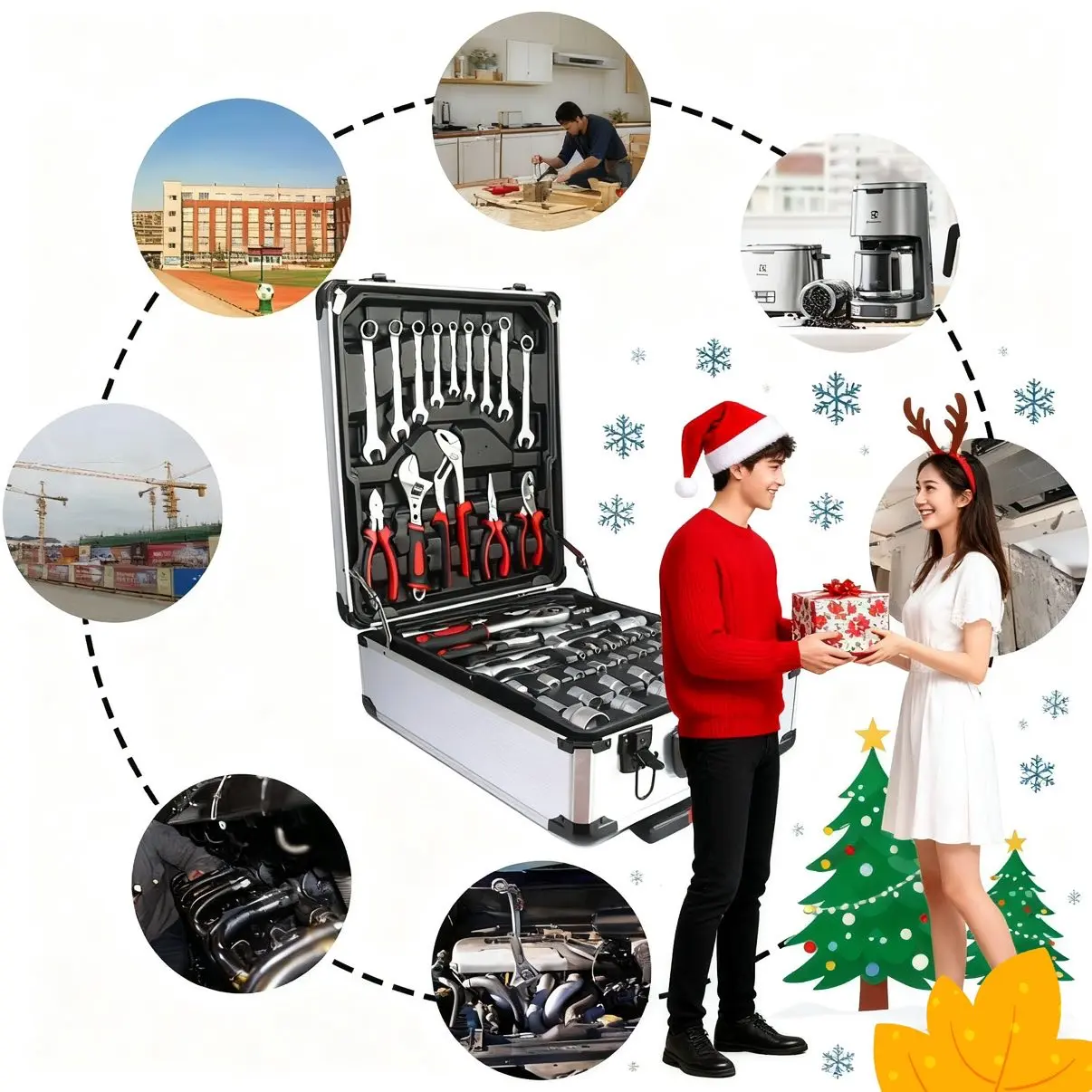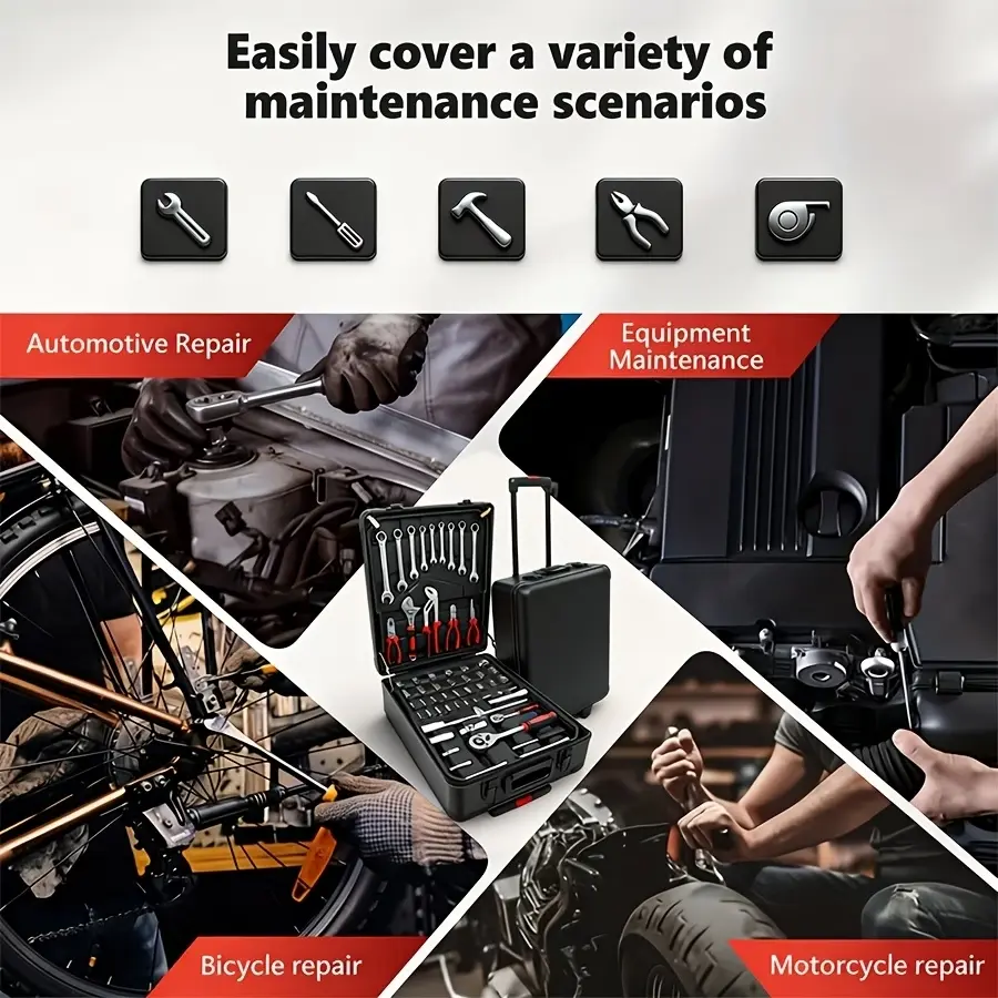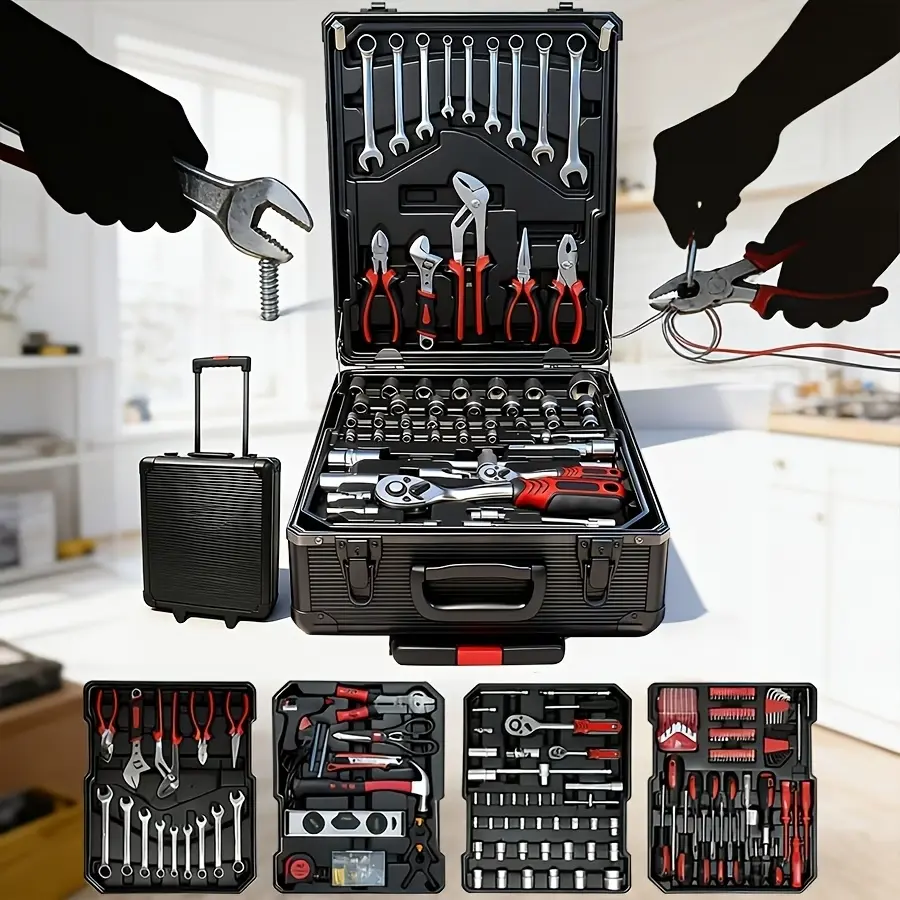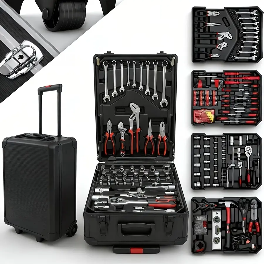 ·Portable Tool Box The Household Hand Tool Set is a trolley case which made of aluminum alloy;Tool sets looks like a suitcase and can be pulled anywhere freely; Is a good choice for Valentine's Day gifts;;Note! If you receive a damaged product, please contact us in time, it may be that the product is damaged during transportation, we will solve your problem at any time