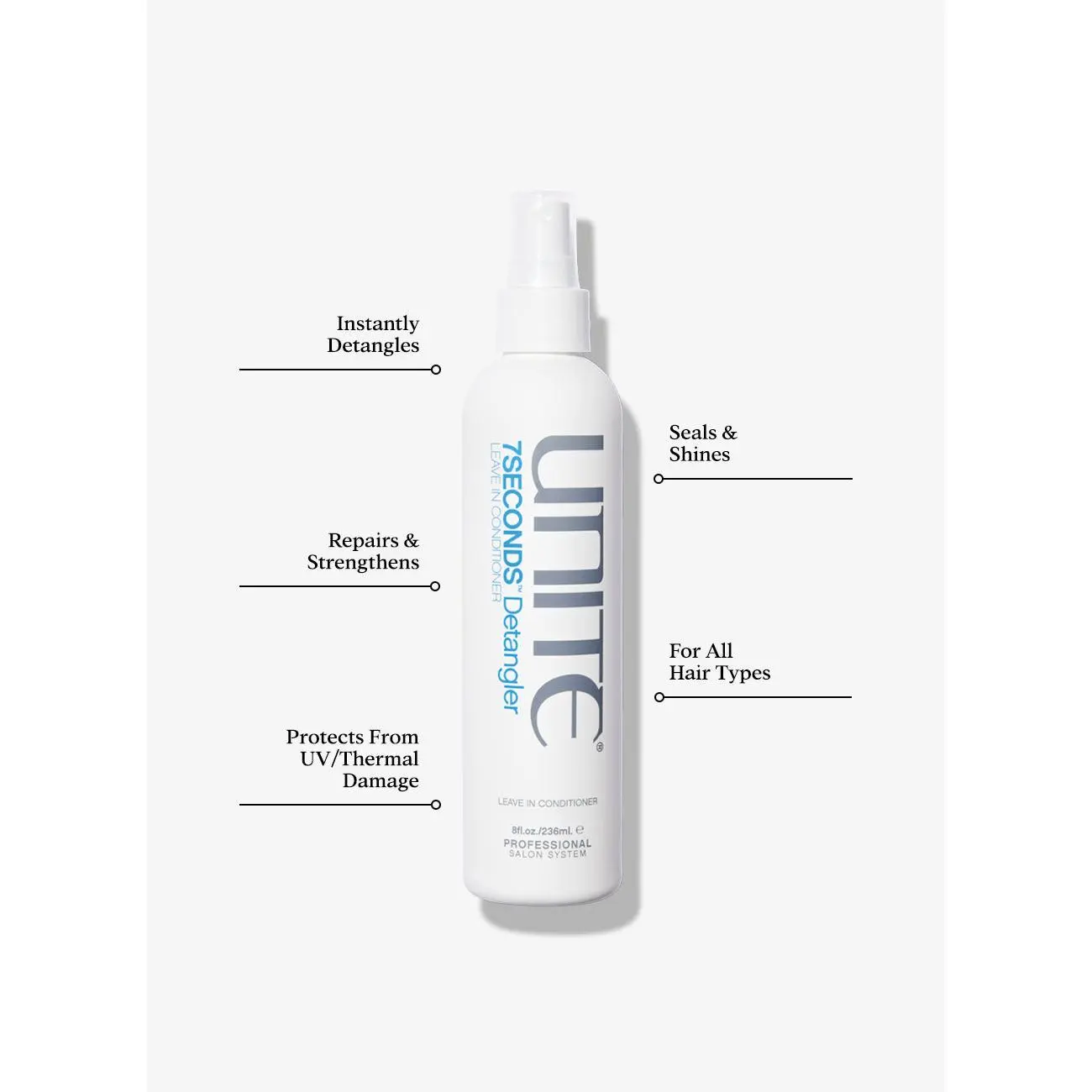 How To Use: Cleanse and condition with any UNITE shampoo and conditioner, and towel dry. Then spray 7SECONDS detangler on damp hair and gently comb to distribute through to ends. Do not rinse. Follow with favorite UNITE styling and finishing products.