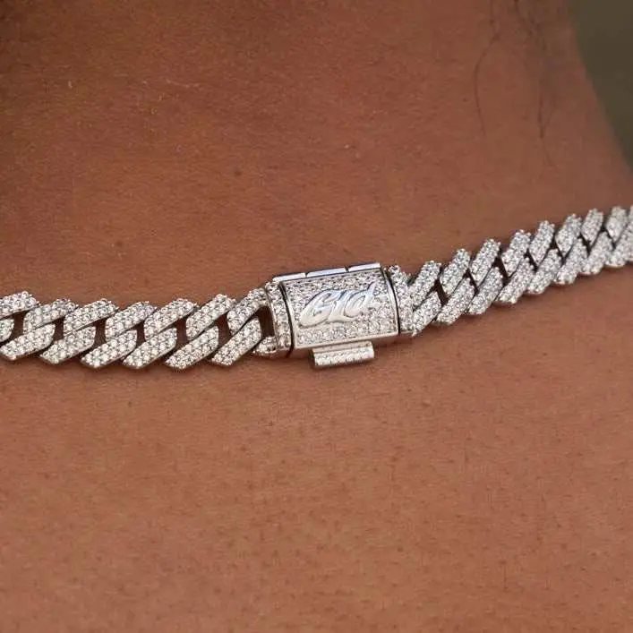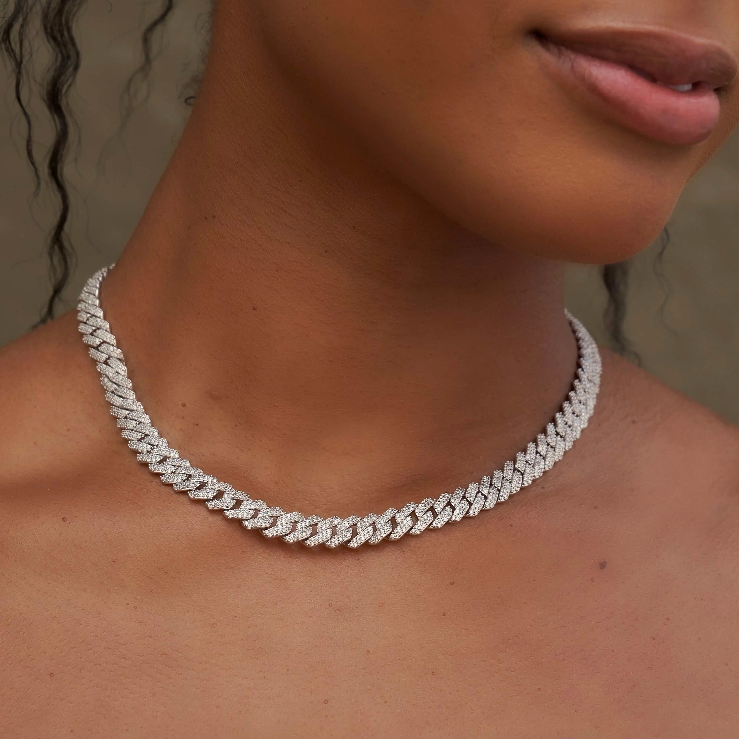 8.5mm Diamond Prong Cuban Necklace - White Gold - Shop Greenish Spring Glow Up Sale