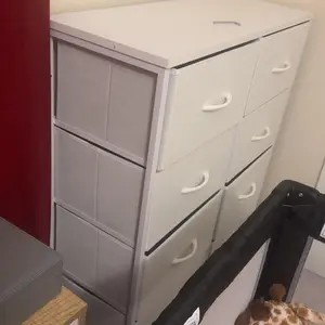 Material: Wood metal and cloth drawers