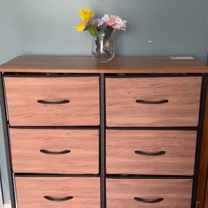 Esta perfecta para el precio es buen material Pero los cajones son pequeños cave un pantalón per bien doblado como en cuadro No es madera los cajones El armaron es metal y la.parte de arriba si es tipo madera