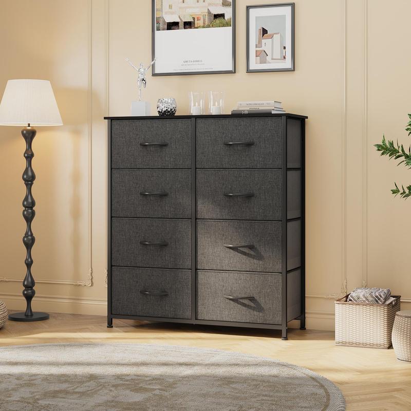 YITAHOME 8 Dresser for Bedroom, Tall Storage Dresser with 8 Drawers, Black Dresser & Chest of Drawers, Storage Drawer Organizer for Closet, Bedroom, Living Room(Black Grey)