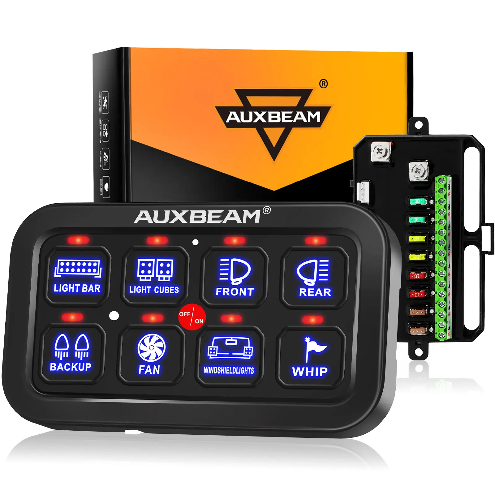 5. AUXBEAM 8 Gang Blue LED Switch Panel Car Control Offroad Lighting System with Automatic Dimmable Backlight for Safe Driving