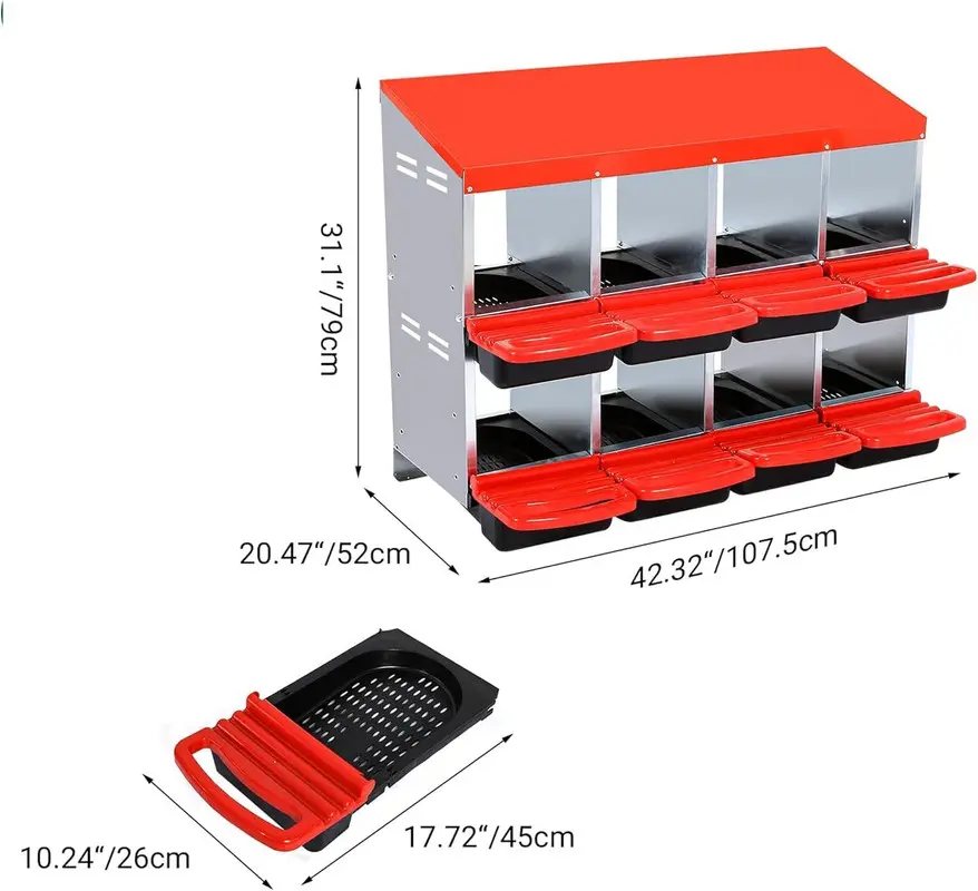 ·Spacious and Cozy Nesting Area: Designed with ample space, this roll-away nesting box creates a clean, comfortable, and safe environment for hens to lay their eggs. The thoughtful layout promotes well-being and encourages higher egg production rates by providing a cozy nesting area.