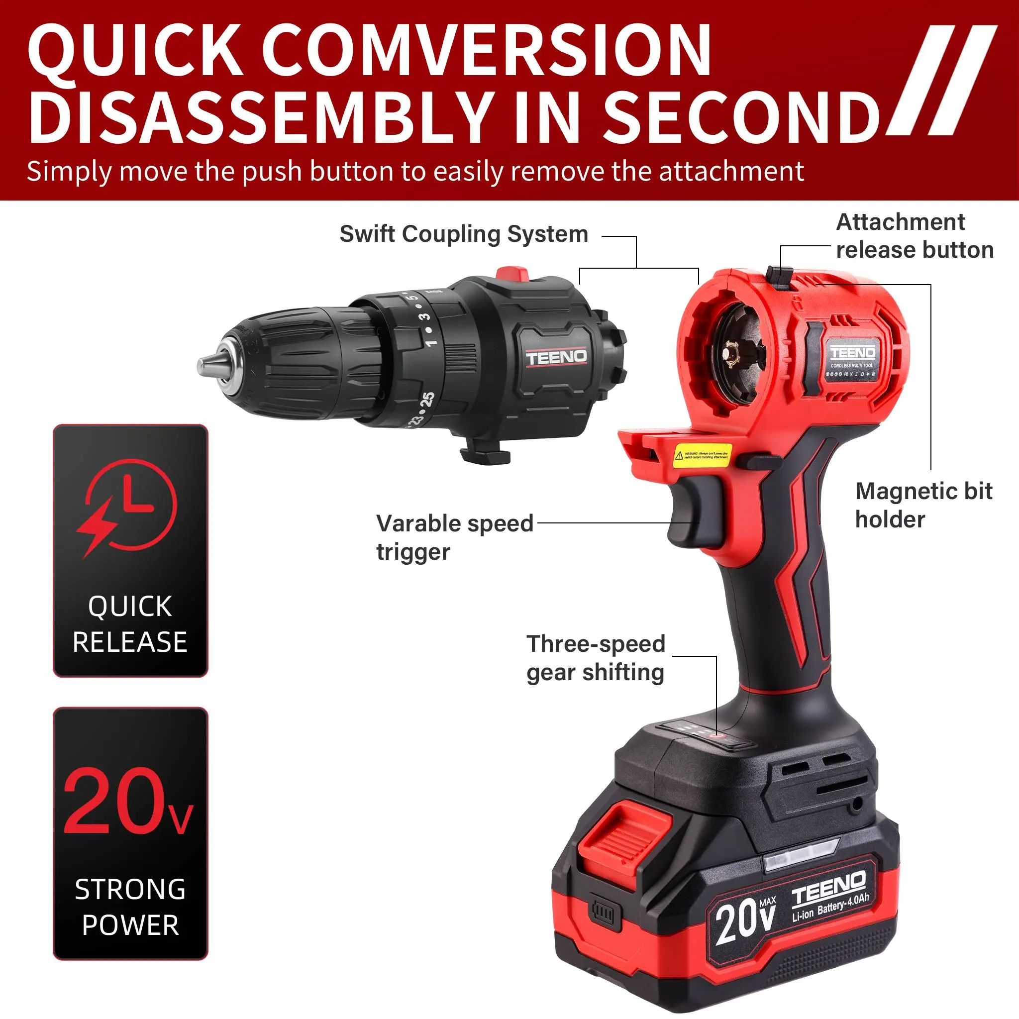 3 IN 1 :This kit includes a variable speed drill/driver, impact wrench ,oscillating tool and tool box