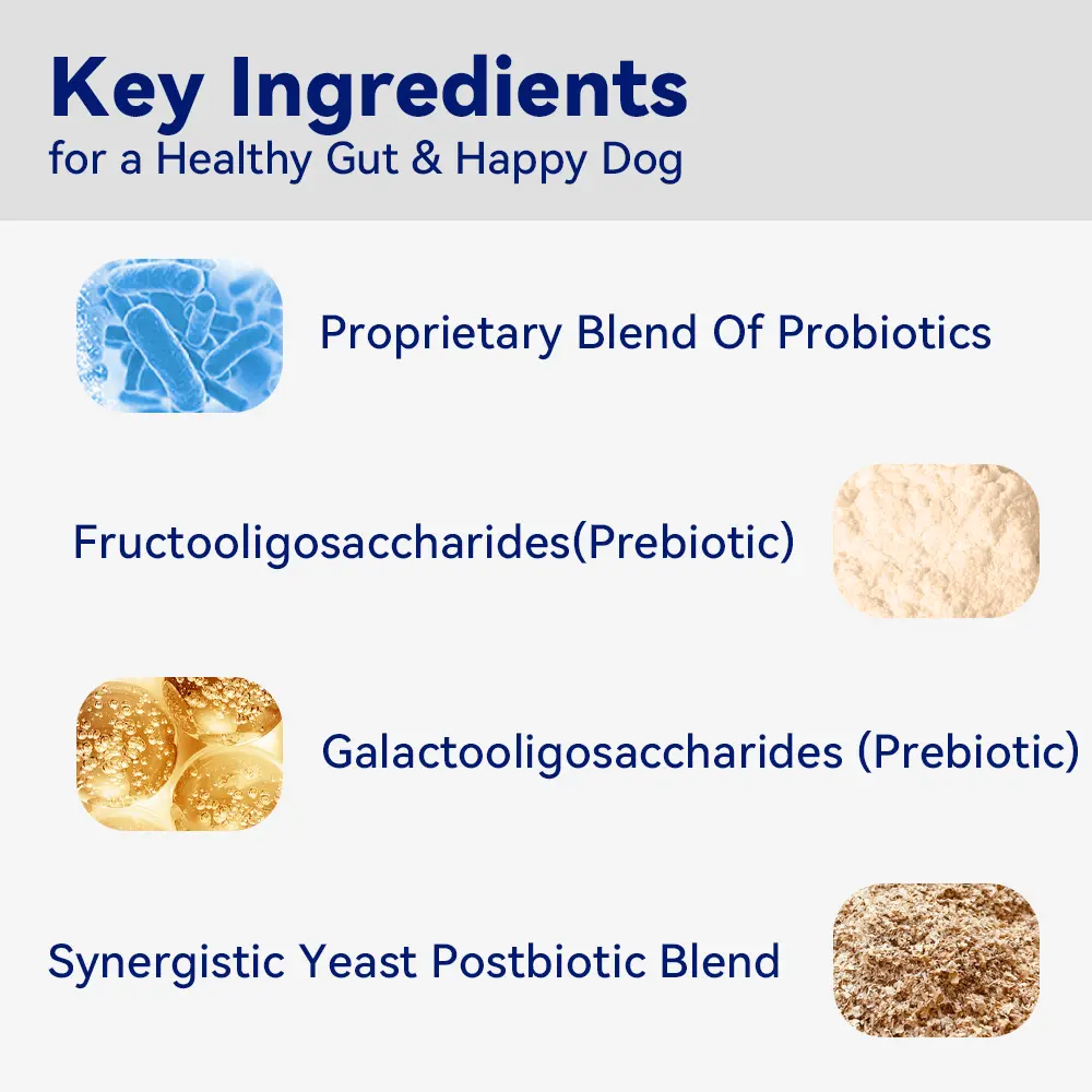 Dog Probiotic Chews – Keep your dog’s tummy happy and healthier! These pork-flavored soft chews support your dog’s digestive system. Rich in beneficial probiotics, the product's nutritional value. They help balance your dog’s digestive system and promote regular bowel movements. Your dog will love them!