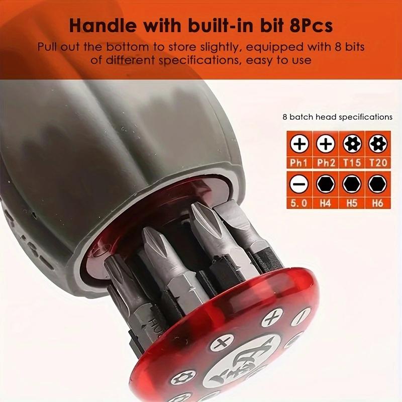 【Magnetic Tip Design】: The magnetic screwdriver tip ensures a firm grip on screws, preventing drops and improving efficiency — perfect for tight or hard-to-reach spots.