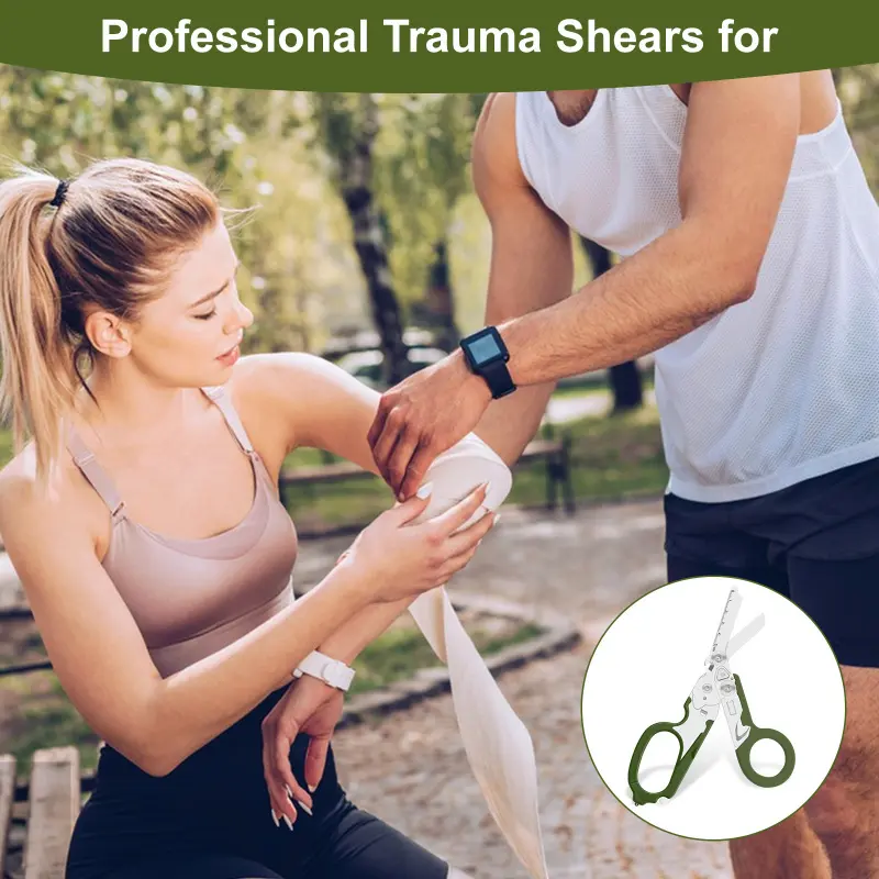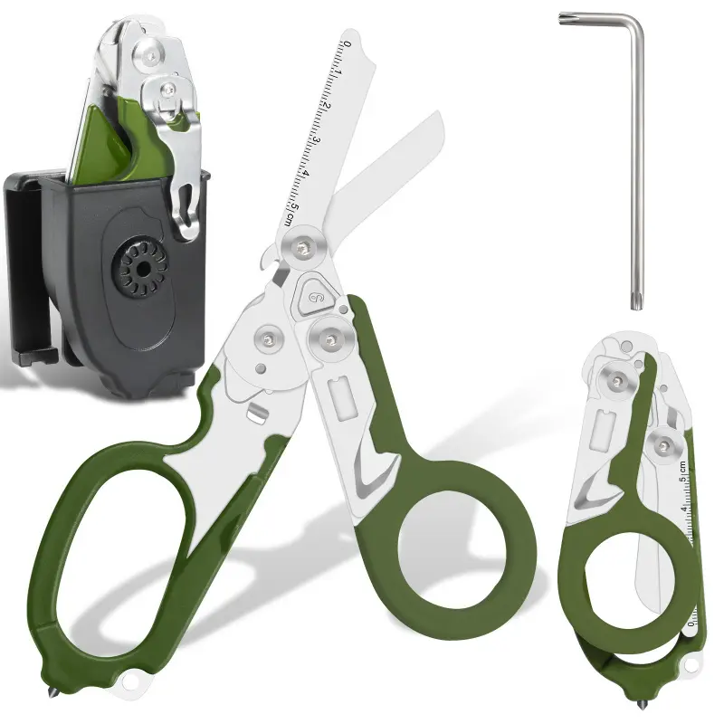 8in1 Outdoor Tactical Scissors, Upgraded EDC Multifunctional Folding Scissors, Medical Emergency Multipurpose Scissors for Outdoor Camping Hiking Home, Hand Tool, Army Green