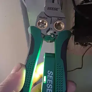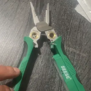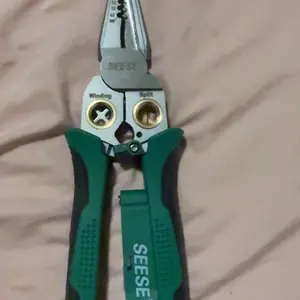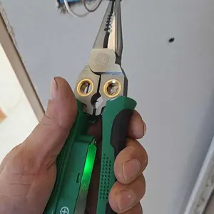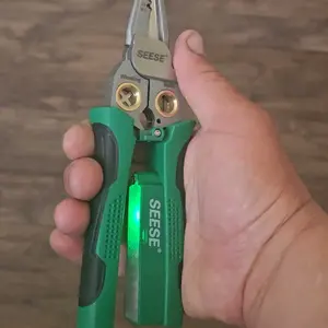 I bought this last month.it arrived today. From a private shipper. loosely wrapped in a bubble sleeve. The product inside was opened and came w/ a microscopic “manual” identifying some parts. I opened the pliers which were lit up green . Immediately got stabbed by a tiny blade . WHY is there a tiny blade sticking straight out on the inside of the pliers? There’s no shield or safety on it. I noticed there was also a tiny bag with a secondary blade. You could have made this feature slide out and back in for safety. Or why is it an actual blade and not a pin that can cut through wire covers .