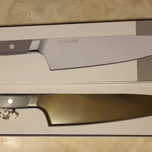 I ordered this knife to augment the Henckel Chefs knife I have. I have a few other Chefs knives I’ve acquired over the years, notably a couple of Japanese knives that are wonderful. After a few months use I am very happy with the Misen Chefs knife and would highly recommend it. It’s well balanced, the shape of the handle is comfortable in multiple holding positions, held it’s edge well and it’s pretty with the red handle (my Wife’s comment). The Misen is now my Go-To knife and if I had to have only 1 Chefs knife this would be it.