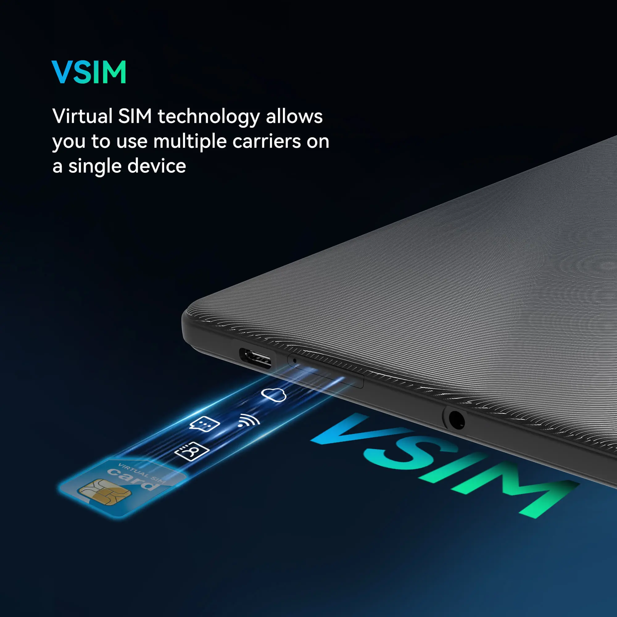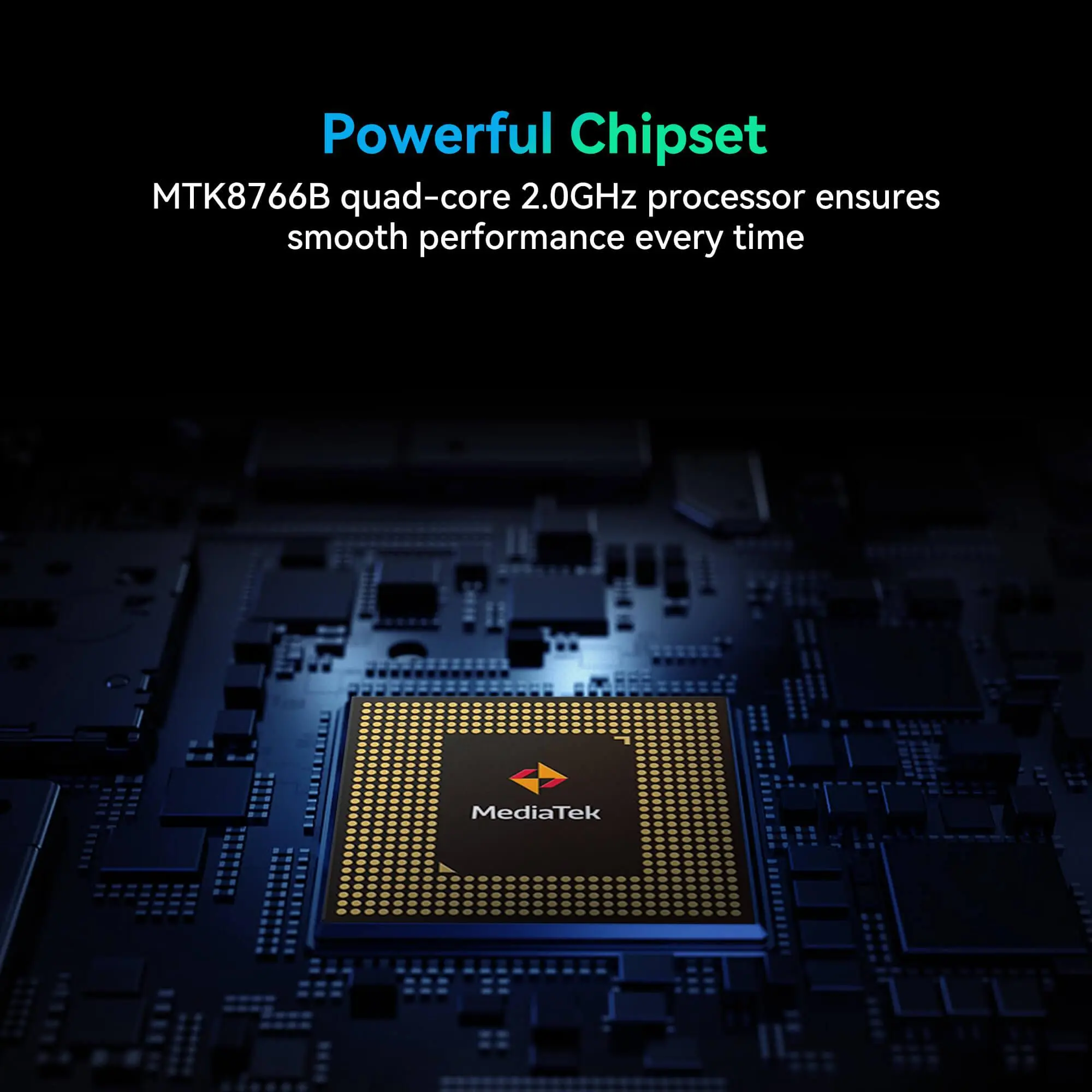 Equipped with an MTK8766B Quad-Core 2.0GHz processor and Android 13, this tablet delivers smooth performance. The 4000mAh battery powers your day. VSIM, Type-C, and a 3.5mm AUX port enhance connectivity. Not compatible with Verizon, Xfinity, or Cricket. Contact customer service for international compatibility.