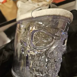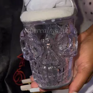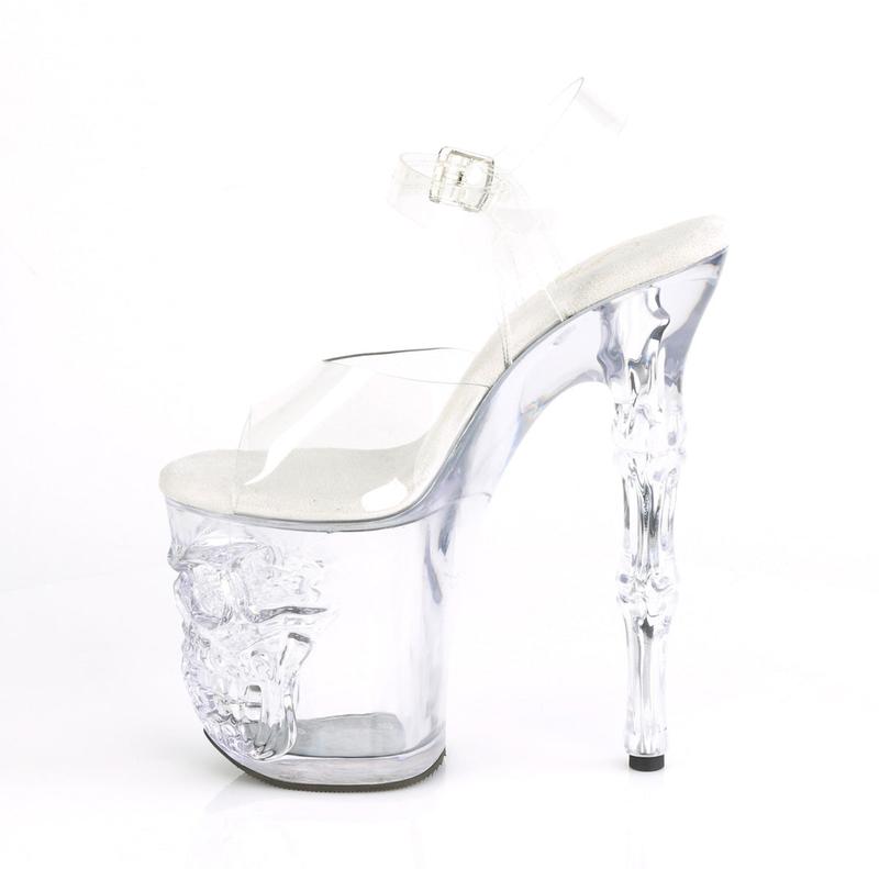 Pleaser RAPTURE-808 Clear 8 Inch (200mm) Finger Bone Heel, 4 Inch (100mm) Platform Ankle Strap Sandal Featuring Skull & Bones Platform Bottom
