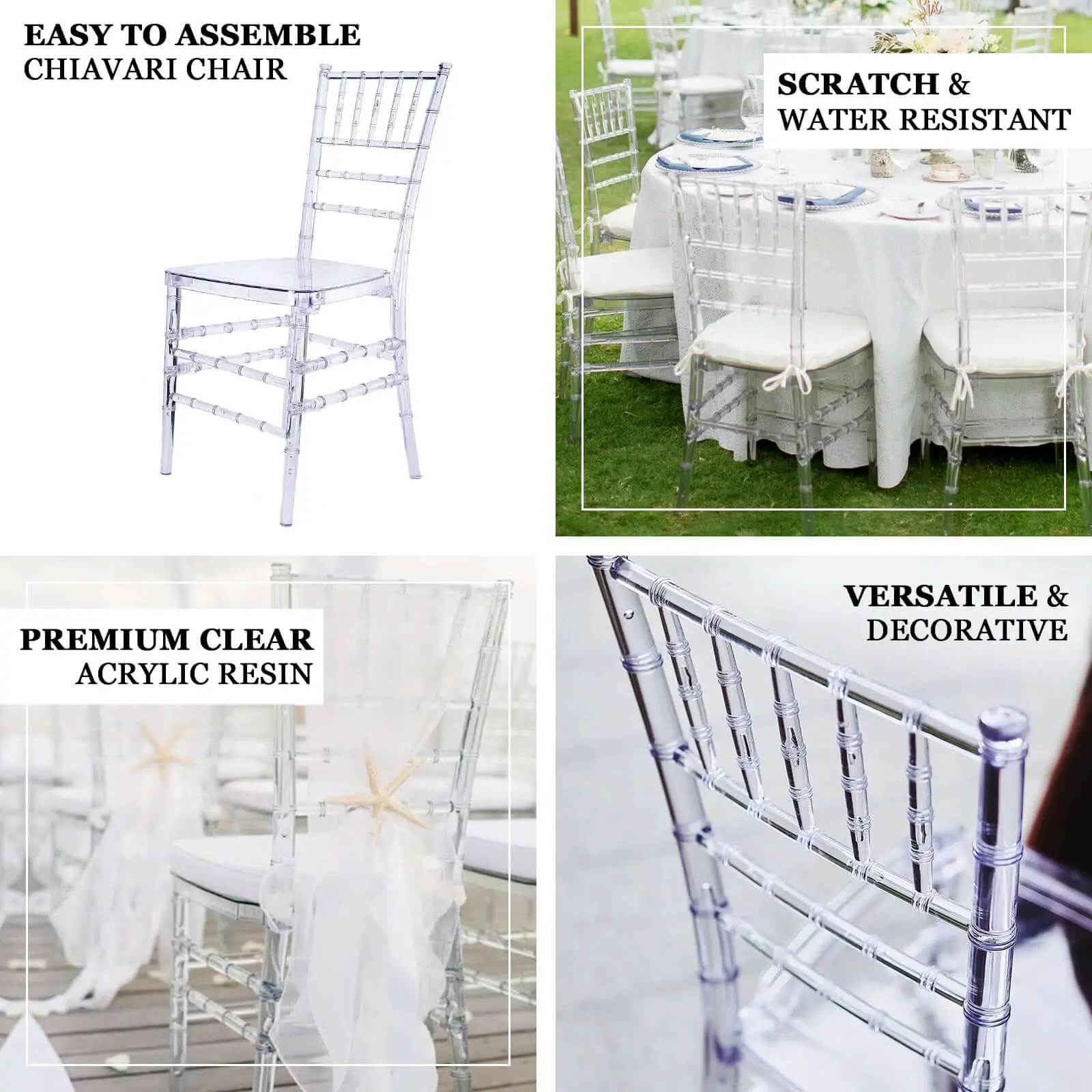 8 Pack Resin Chiavari Chairs Transparent and Stackable Clear - Sleek Armless Design for Weddings & Gatherings