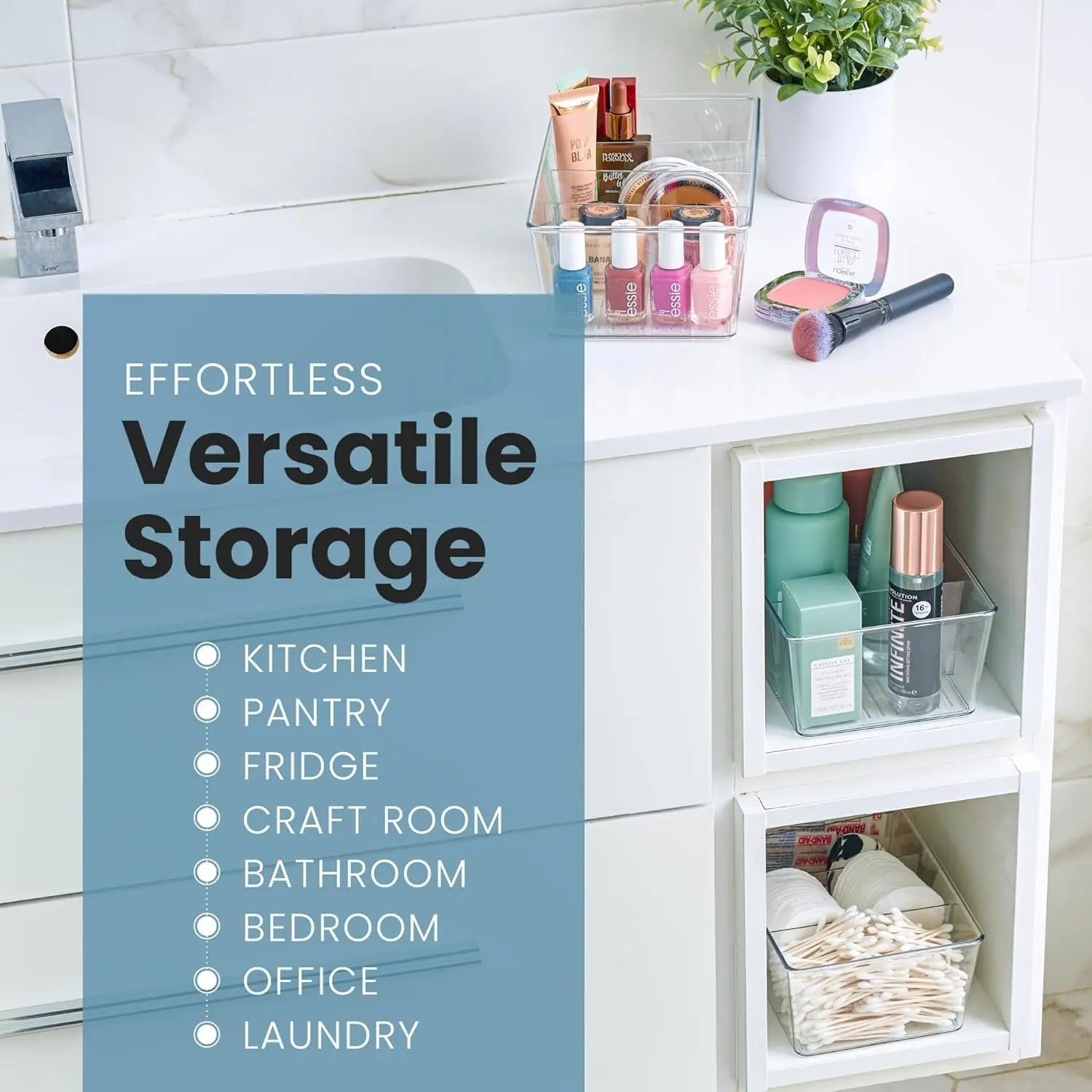·SEE-THROUGH ORGANIZATION – FIND IT FAST! Crafted from clear, durable plastic (acrylic-like material). Benefit: Easily see exactly what's inside each bin, so you can quickly find what you need without rummaging. Saves time and reduces frustration!
