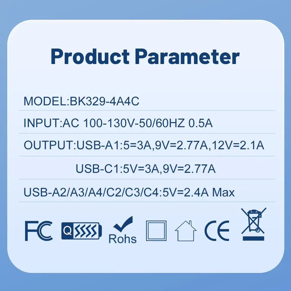 ·Fast Charging Technology: Each port is optimized for fast, efficient charging, allowing you to quickly power up your devices without waiting.
