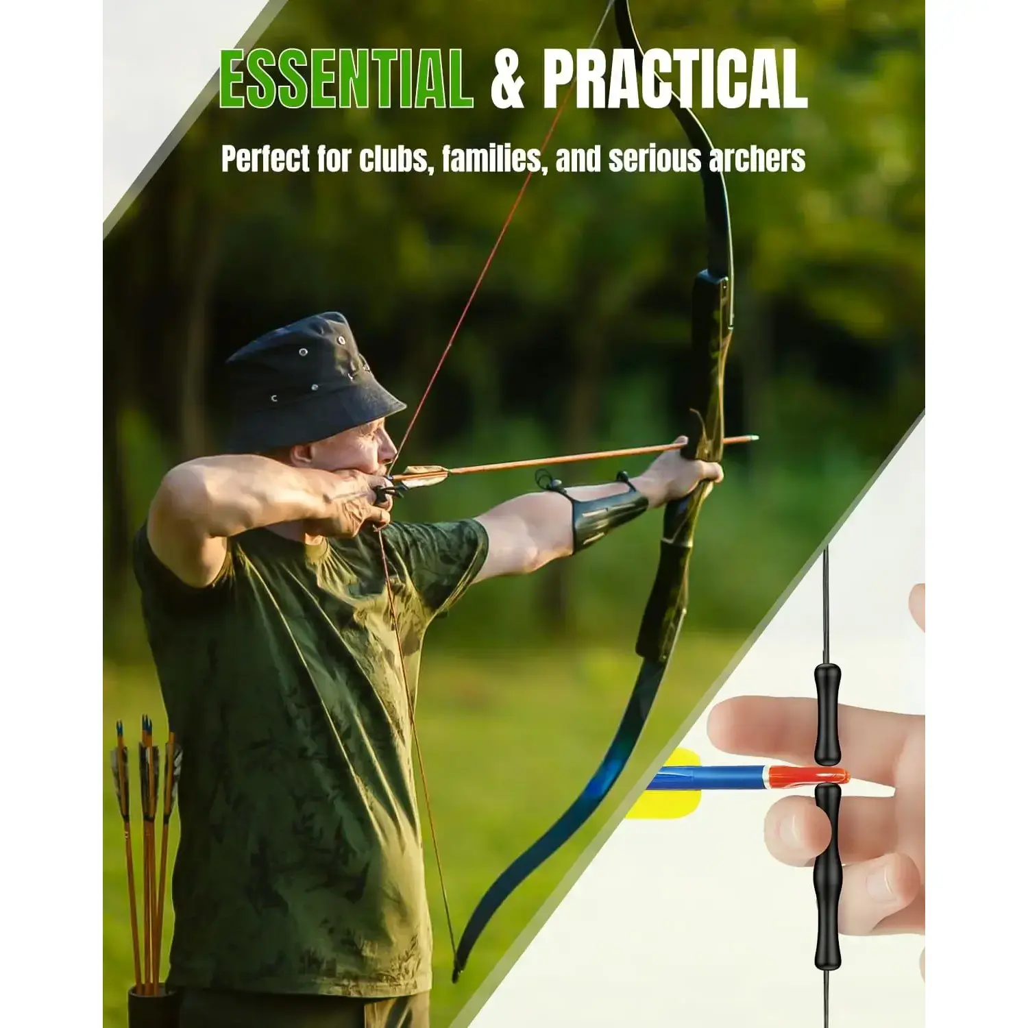 ·Enhanced Accuracy: The anti-slip matte finish provides unwavering stability during string pulls, minimizing finger sliding and bowstring friction. Greatly help improve the shooting precision of both beginners and experienced archers