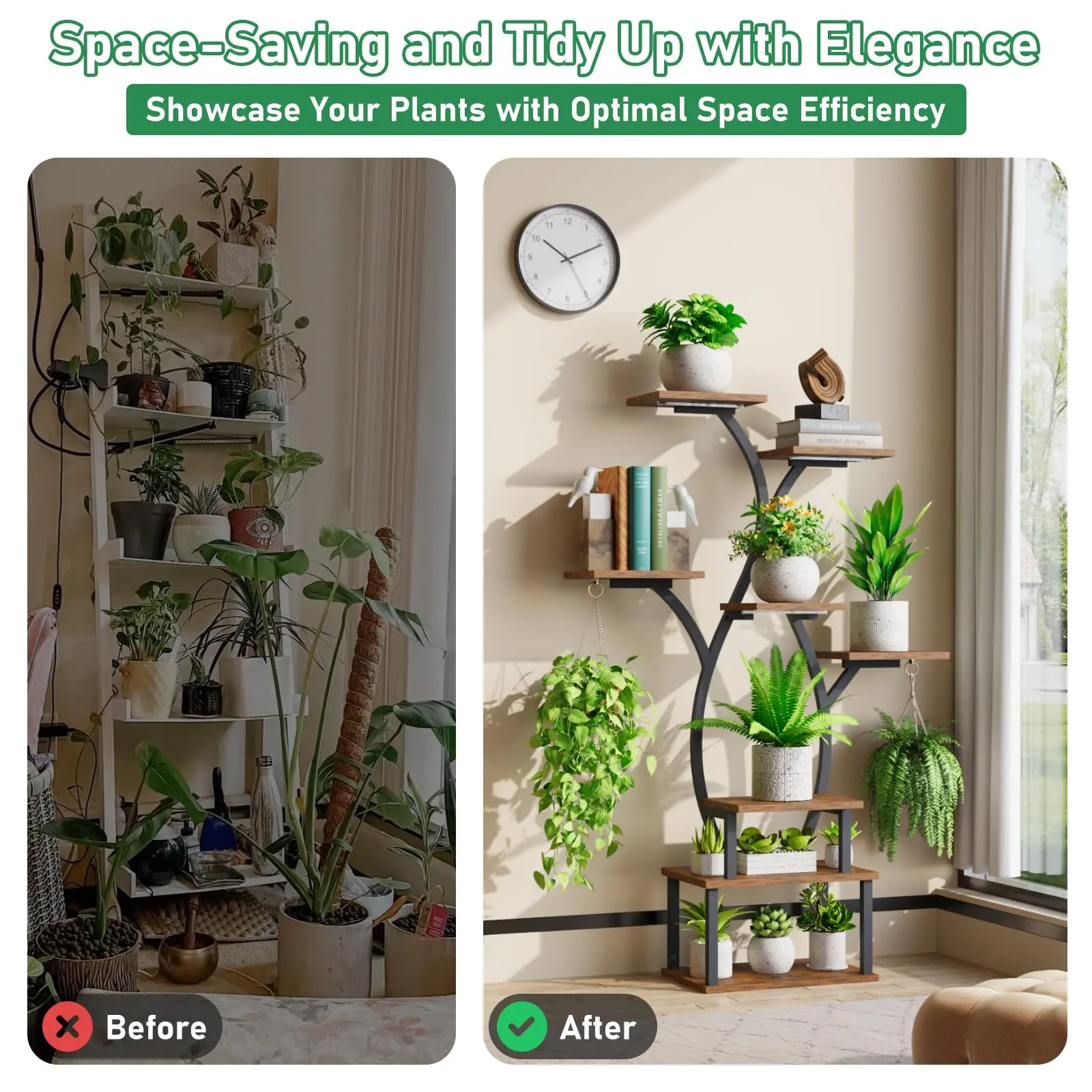 ·[Multifunctional Plant Shelf]:Featuring 8 tiers and 8 wider potting shelves, you can better place and display your plants, photos, books and other items, make full use of the space in your home, let your home more neat and beautiful.
