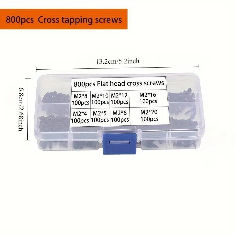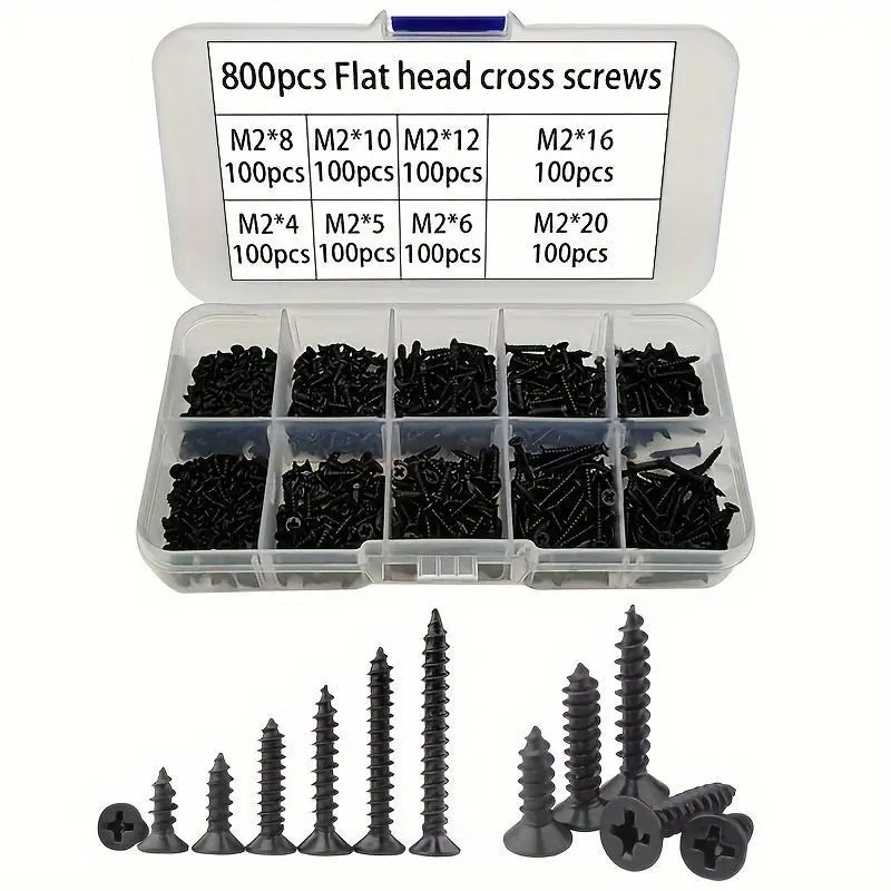 800pcs M2 Black Phillips Self Tapping Screw Assortment Kit, Locking Screws And Wood Screws, Self Drilling Screws