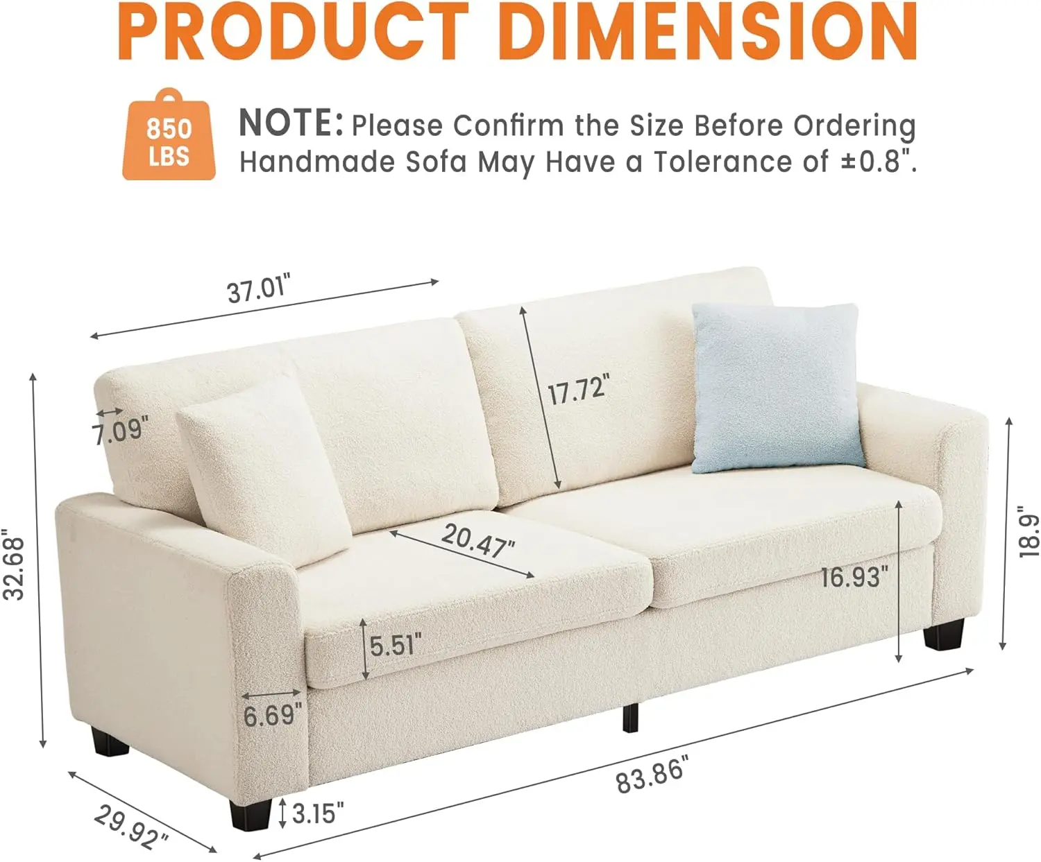·【Sturdy Construction】Built with a robust wooden frame and reinforced supports, this sofa ensures stability and longevity. It withstands daily use with a reliable weight capacity, keeping cushions firm and preventing sagging over time. The sturdy legs add extra stability while elevating the sofa slightly for easy floor cleaning, blending durability with practical design for years of enjoyment.