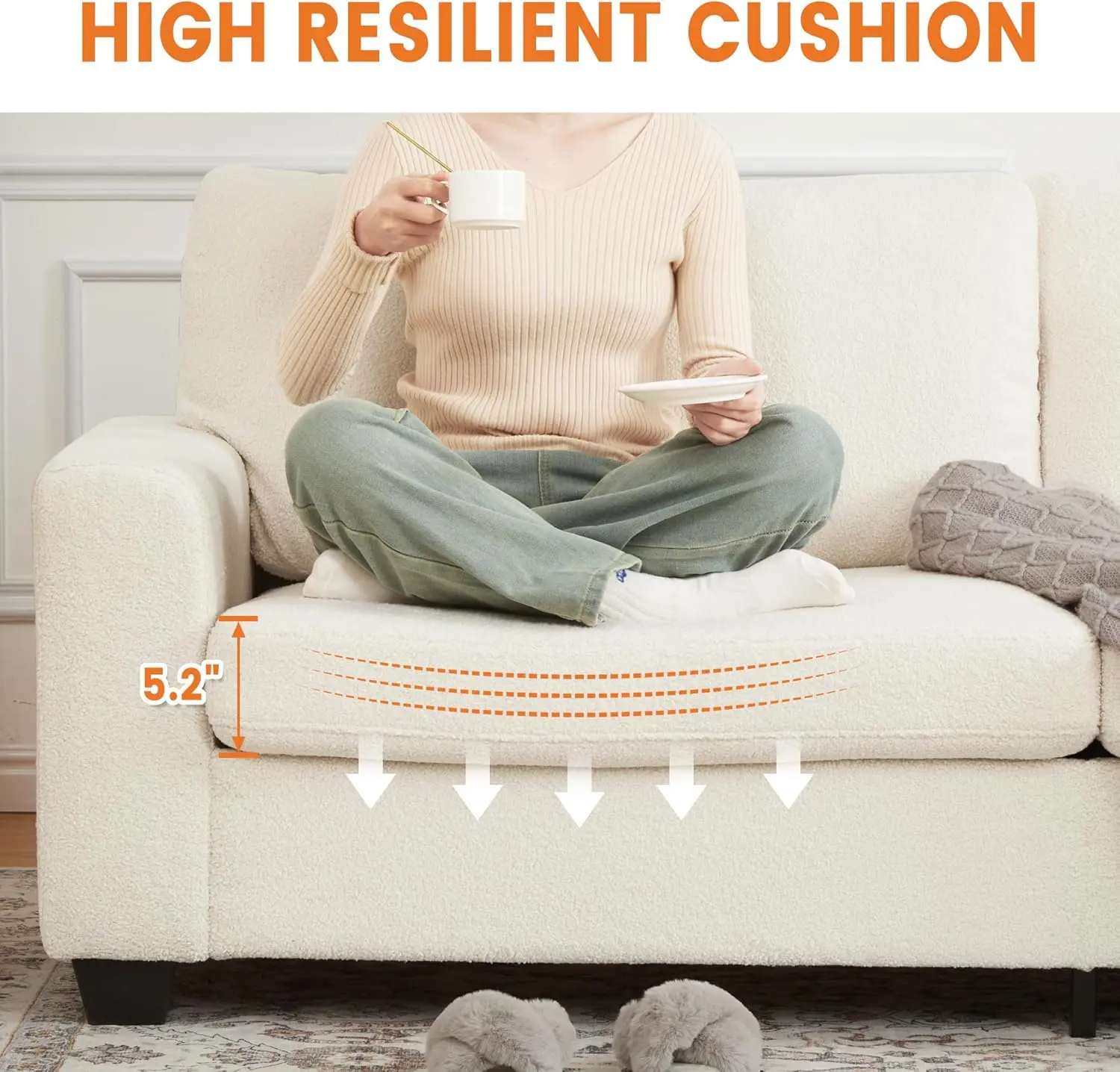 ·【Deep Seat & Wide Armrest】Designed with a deep seat and wide armrests, this couch offers exceptional comfort for lounging, reading, or watching TV. The plush cushions provide supportive padding that cradles your body, while the wide armrests double as convenient spots to rest drinks or books. Whether relaxing alone or with family, the generous seating space ensures everyone stays cozy without feeling cramped.