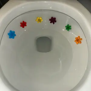 Leave behind a fresh scent and clean toilet. Would recommend to anybody to get a great amount of stampers. A total of 84 flowers in the colors of red orange, yellow Green, blue, indigo, and Violet. The colors of the rainbow really smell. You can smell the freshness when you open the pack